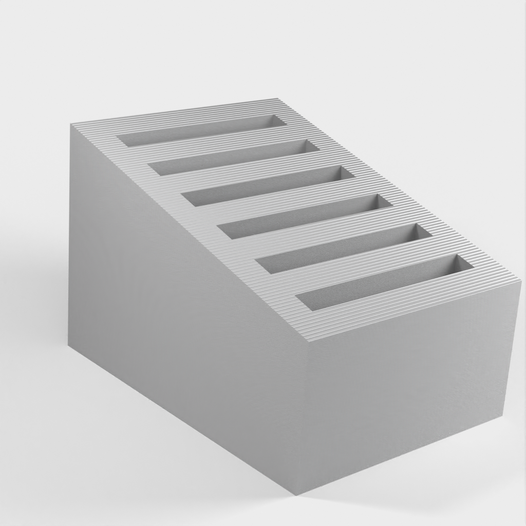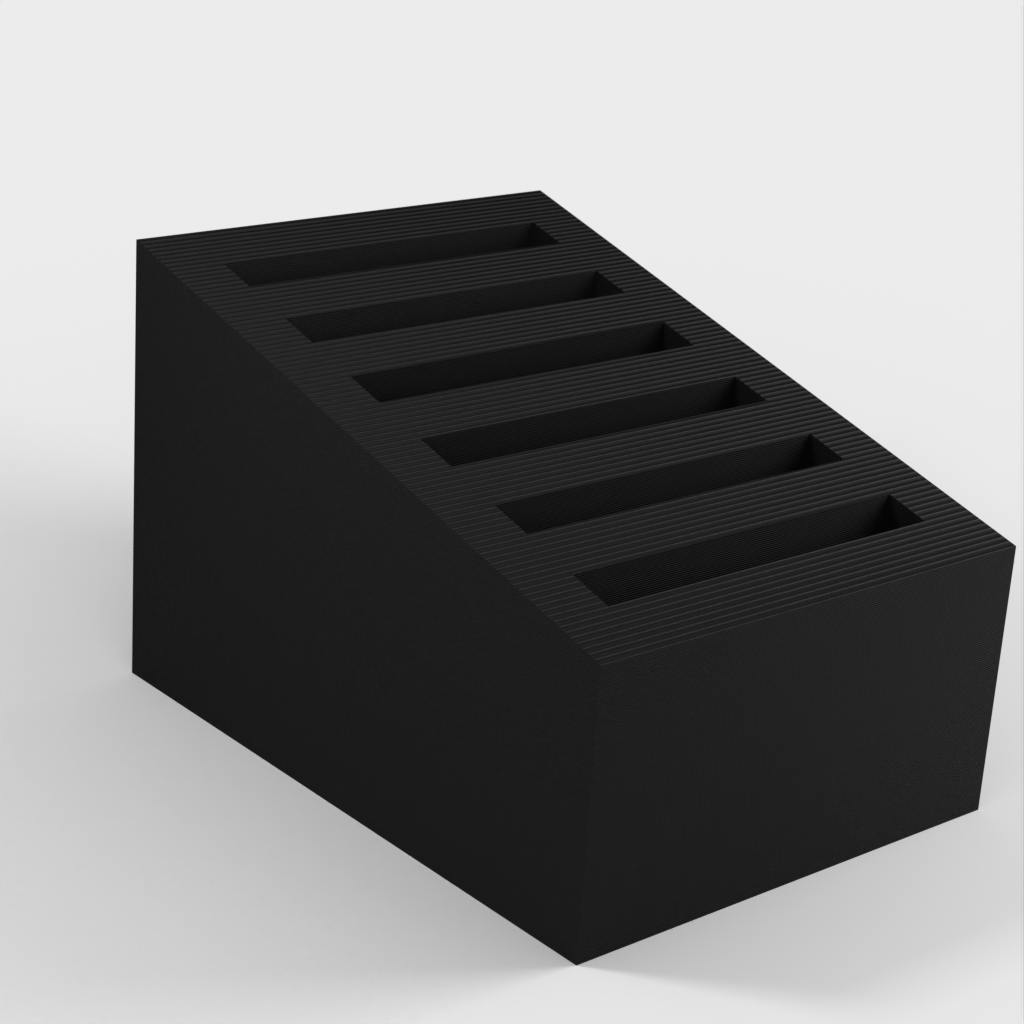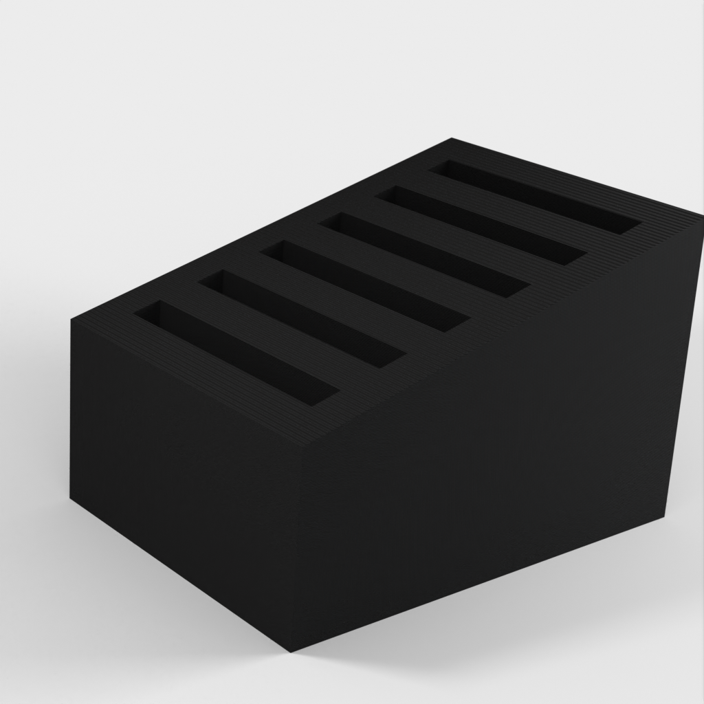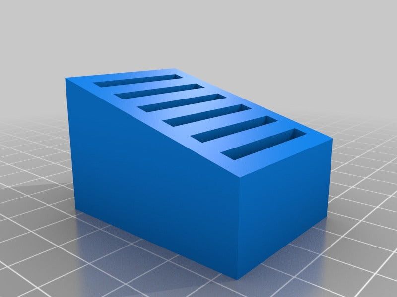 The Parametric SD card holder is an upgraded version of jpcw's SD card holder. This model can be customized to your specific needs. The primary parameter is the number of slots, but you can also adjust the size of the slots for a tighter or looser fit, respectively. Further adjustments such as the top angle from front to back or the card separation distance can also be changed.