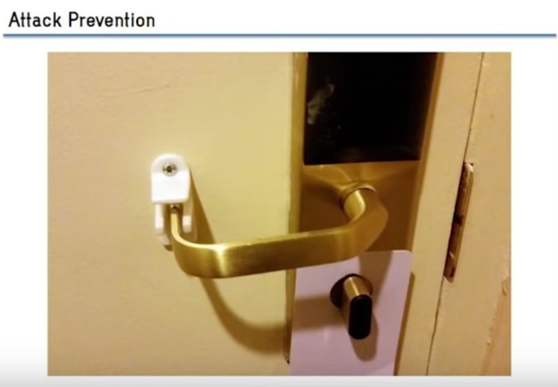 The Pentester Lever Handle Blocker is an effective tool for increasing security in your office, workplace, or hotel. It is designed to prevent under/over door attacks on modern buildings that often use handles. The blocker acts as a shield to hinder any form of door attack. The product is available in two versions, single-sided or double-sided.
