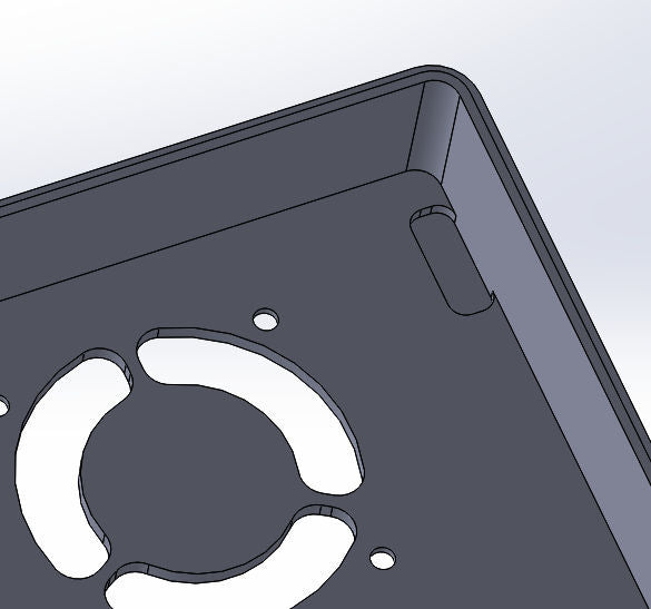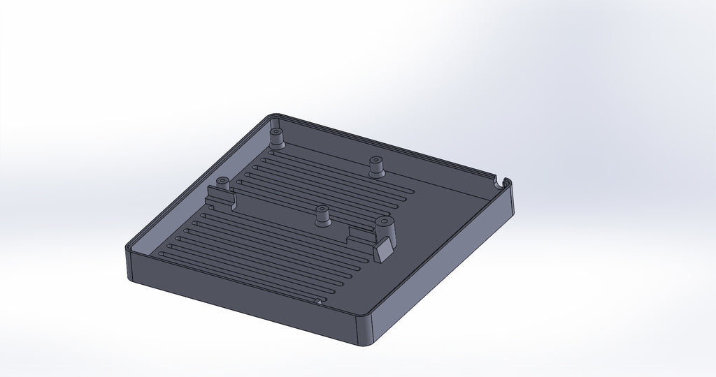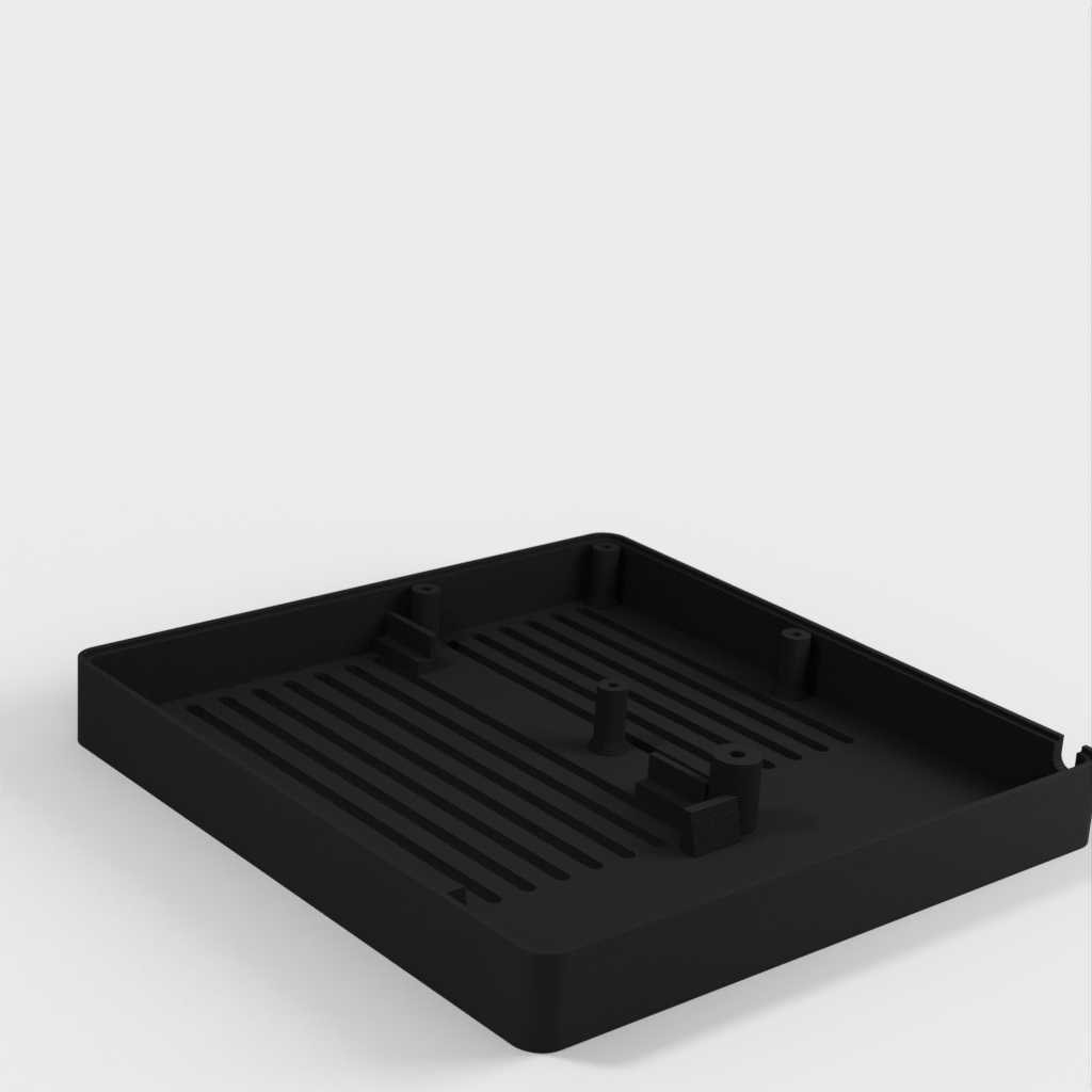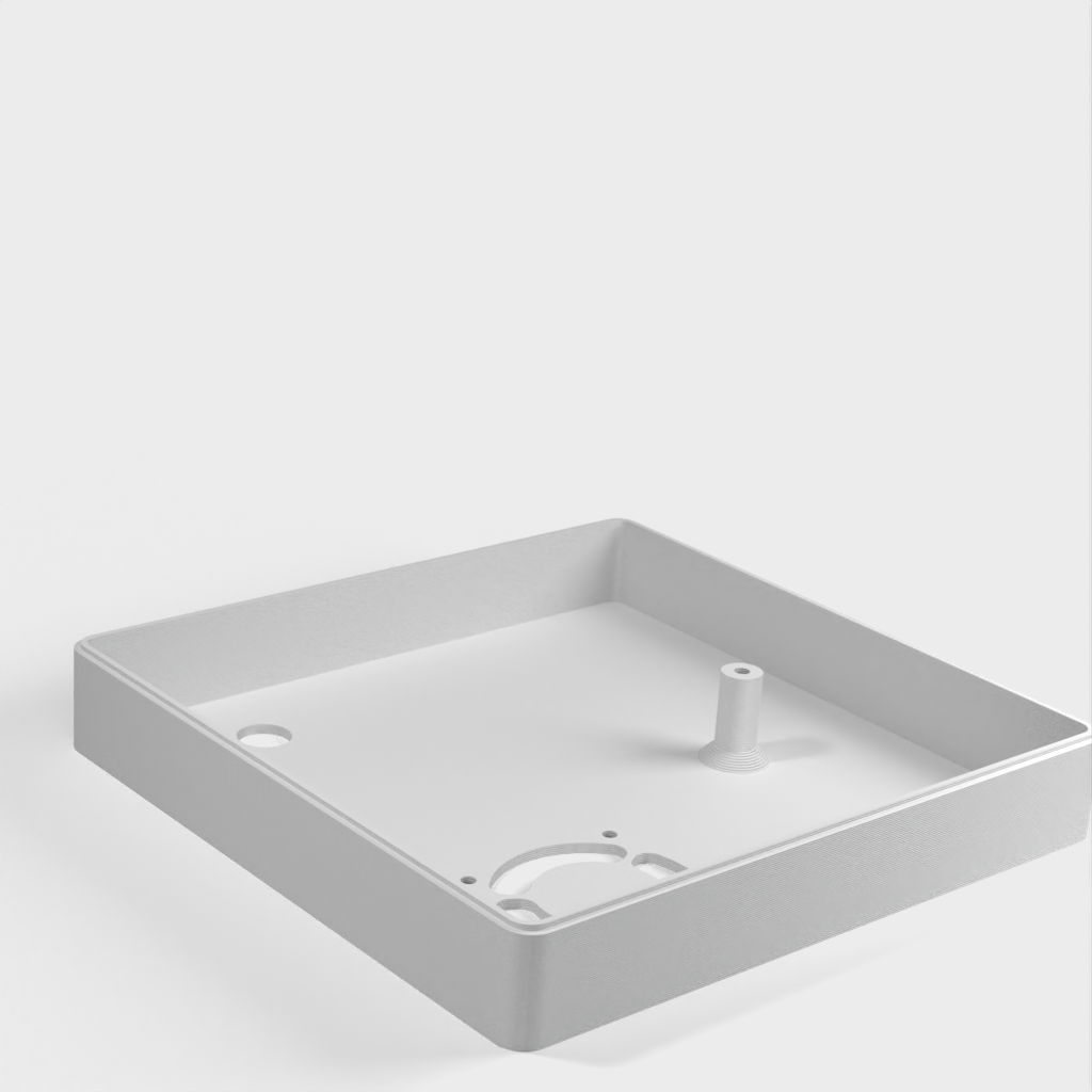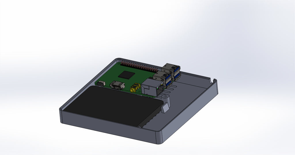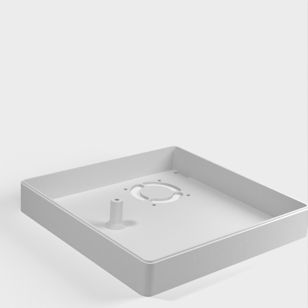 Personlig kasse til Domoticz, der indeholder Raspberry Pi, Pi Drive, RFX.com, Aeon stick z wave. En 40 mm ventilator skal monteres på topdækslet. Husk at tilføje puder under kassen for at sikre optimal køling. Der er foretaget ændringer i henhold til tekniske tegninger, herunder ændring af placeringen af Raspberry's huller og hævning af Raspberry-bordet. En del af topdækslet er blevet gjort tyndere for at tillade visualisering af LED-status gennem transparent materiale.