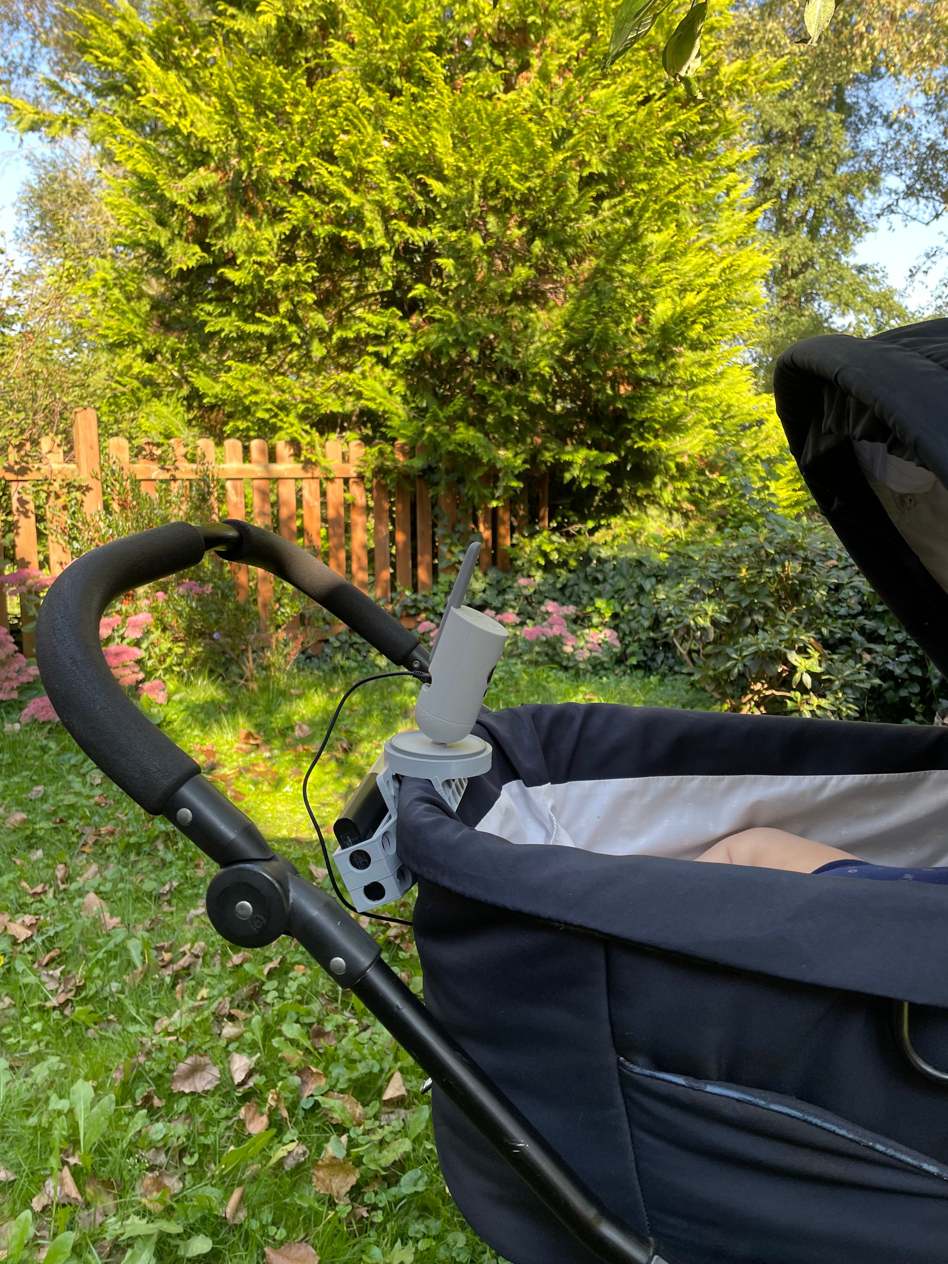 This smart holder is specifically designed for the Philips Avent baby monitor (model SCD923/26), but is also versatile enough to accommodate other baby monitors with a stand up to 70 mm. It provides a practical and organized solution for storing your baby monitor and a power bank simultaneously. With space for a power bank up to 24 mm x 160 mm, the holder ensures your babyphone is always ready for use, as it can be powered without needing an outlet nearby. This keeps your monitoring equipment together, secure, and easily accessible, freeing up space and providing peace of mind while you watch over your child.