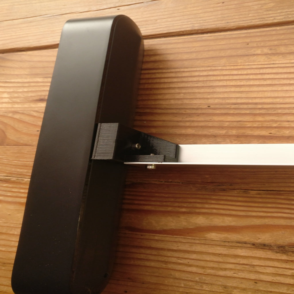 Installation is done by placing the mount between the vertical elements of the TV floor stand, where it is held securely in place using the included spacers. This ensures a stable and optimal placement of your light bars, transforming your living room with dynamic lighting. A discreet and effective way to integrate your Philips Hue light strips as part of your home entertainment system and general Philips accessories.