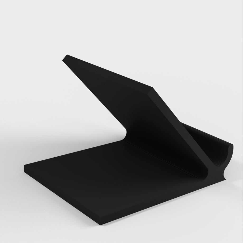 A phone holder designed for comfortably watching videos without having to hold the phone. The phone is intended to be placed horizontally on the stand. Stand B is angled at 65 degrees, while Stand C is angled at 45 degrees.