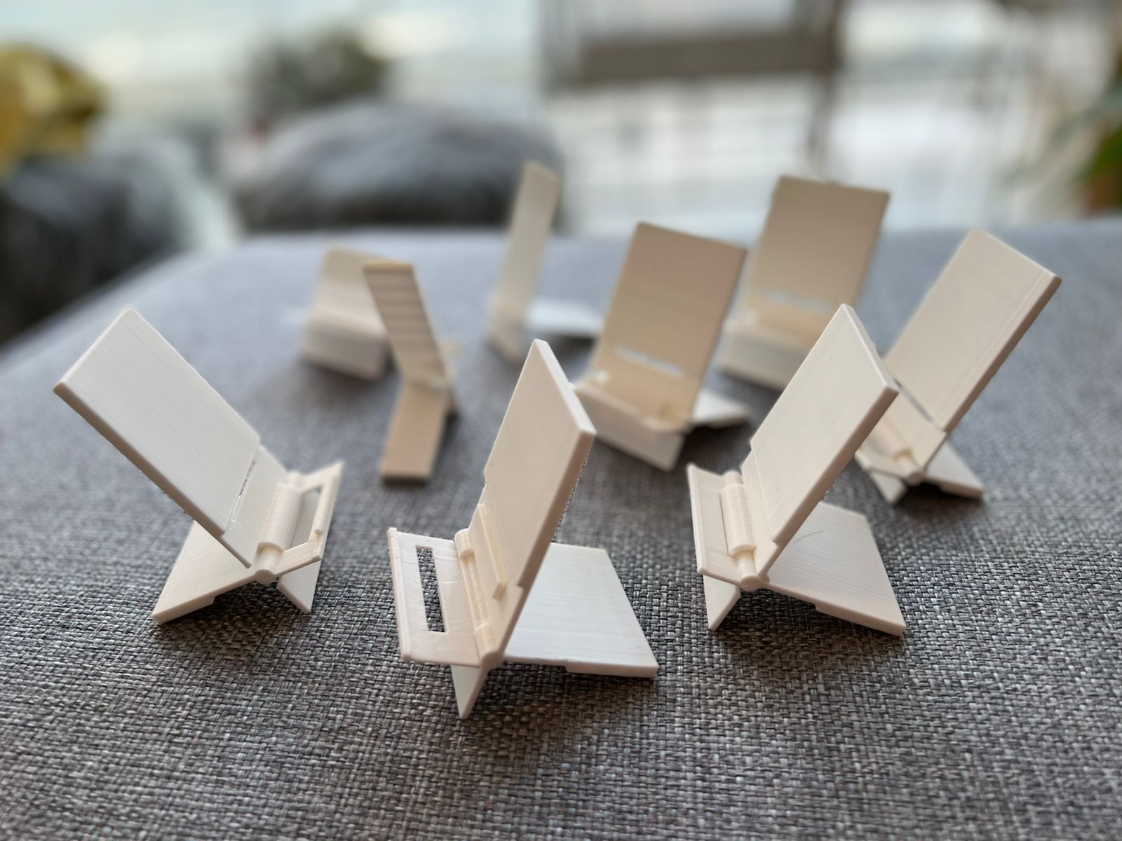 This pocket smartphone holder is perfect for those on the go. It is not only functional but also has room to plug in the charger. Designed to be left on a table, in a safe place where it won't move, vibrate, or need constant repositioning, it is the perfect accessory for any busy person. Although it is not the most aesthetic model, its functionality and portability get the job done.