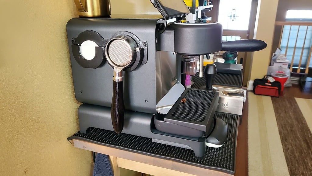 Optimize your coffee area with this practical portafilter and puck paper holder, designed specifically for your Decent Espresso DE1 machine. This holder solution helps create an organized and efficient setup, keeping your essential espresso accessories always at hand.
