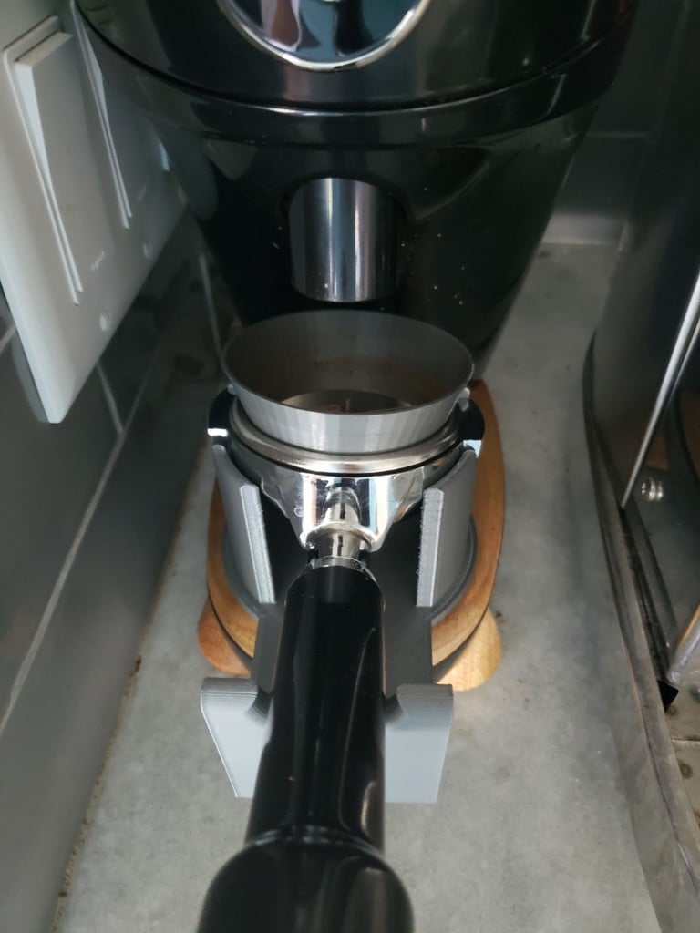 This portafilter holder is specifically designed to replace the original wooden circle on your Niche Zero coffee grinder. It optimizes your coffee brewing by offering a stable and precise placement for your portafilter during the grinding process. Holders are available in two versions: one that is slightly shorter to accommodate a funnel, and one for use without a funnel. This practical espresso accessory improves your workflow and ensures a more consistent dose, contributing to an enhanced espresso experience.