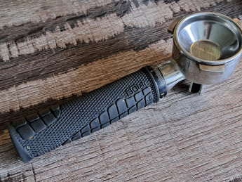 This adapter is designed to improve the handling of your portafilter for Sage Barista coffee machines. It provides an improved grip, inspired by mountain bike grips, which can offer a more stable and secure feel during use.