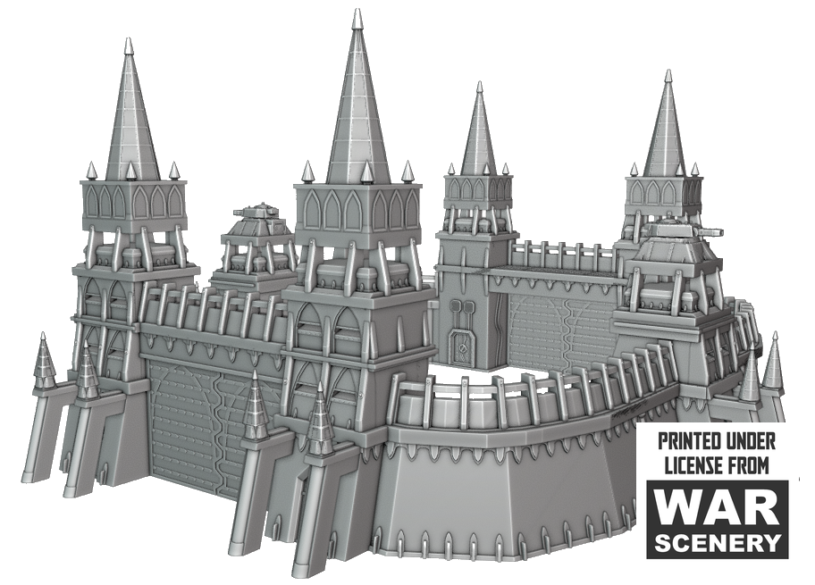 This fortress wall provides a dramatic and robust centerpiece for your grimdark tabletop wargaming scenarios. Use this imposing structure to define strategic battlegrounds, enabling exciting assaults and defenses. The terrain seamlessly integrates into any dystopian game universe, elevating the visual experience of your tabletop game.