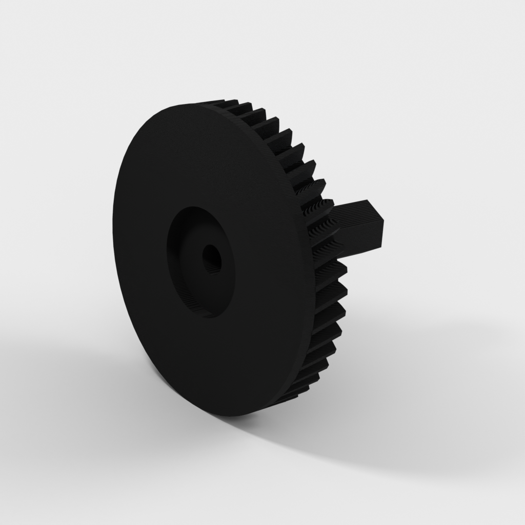 The gear is constructed to fit precisely into the existing system and ensures seamless integration. For best durability and performance, it is recommended to manufacture the gear from a strong and durable material. The external hexagonal shape provides a secure grip for the side brush, while the internal round bore fits an M3x8 screw.