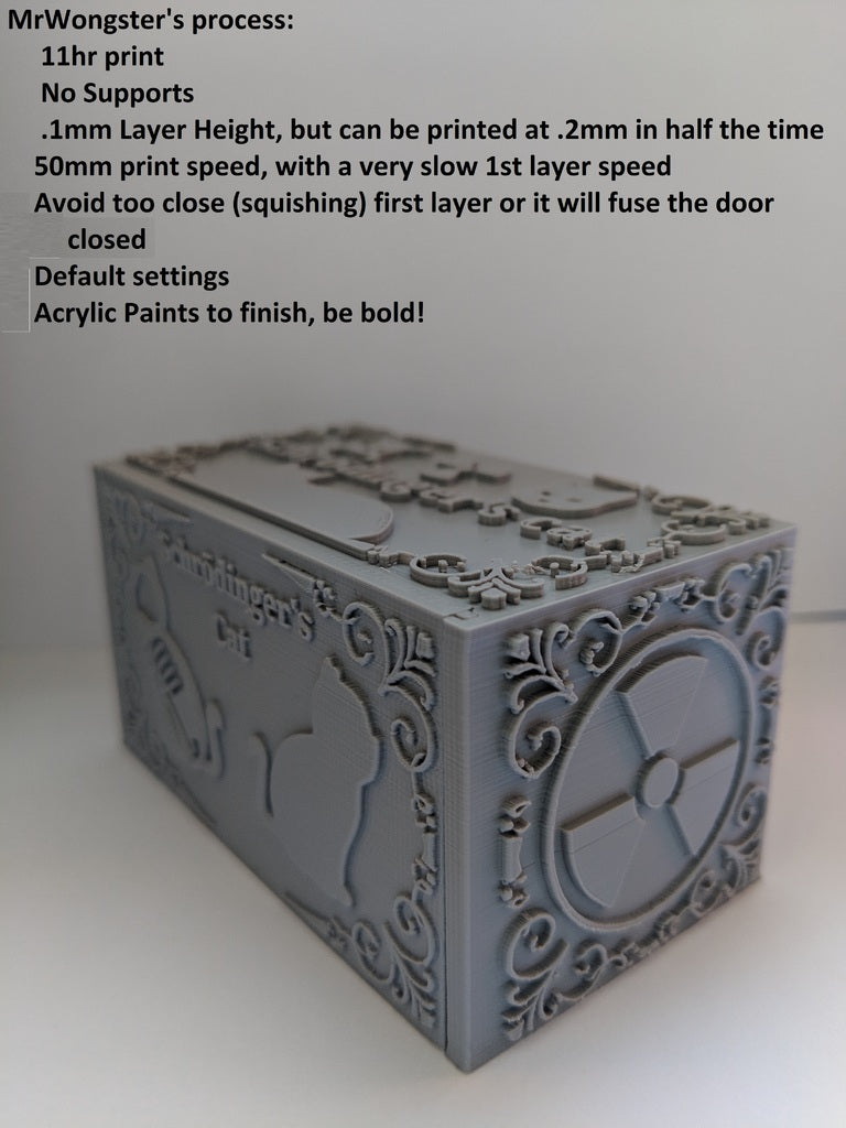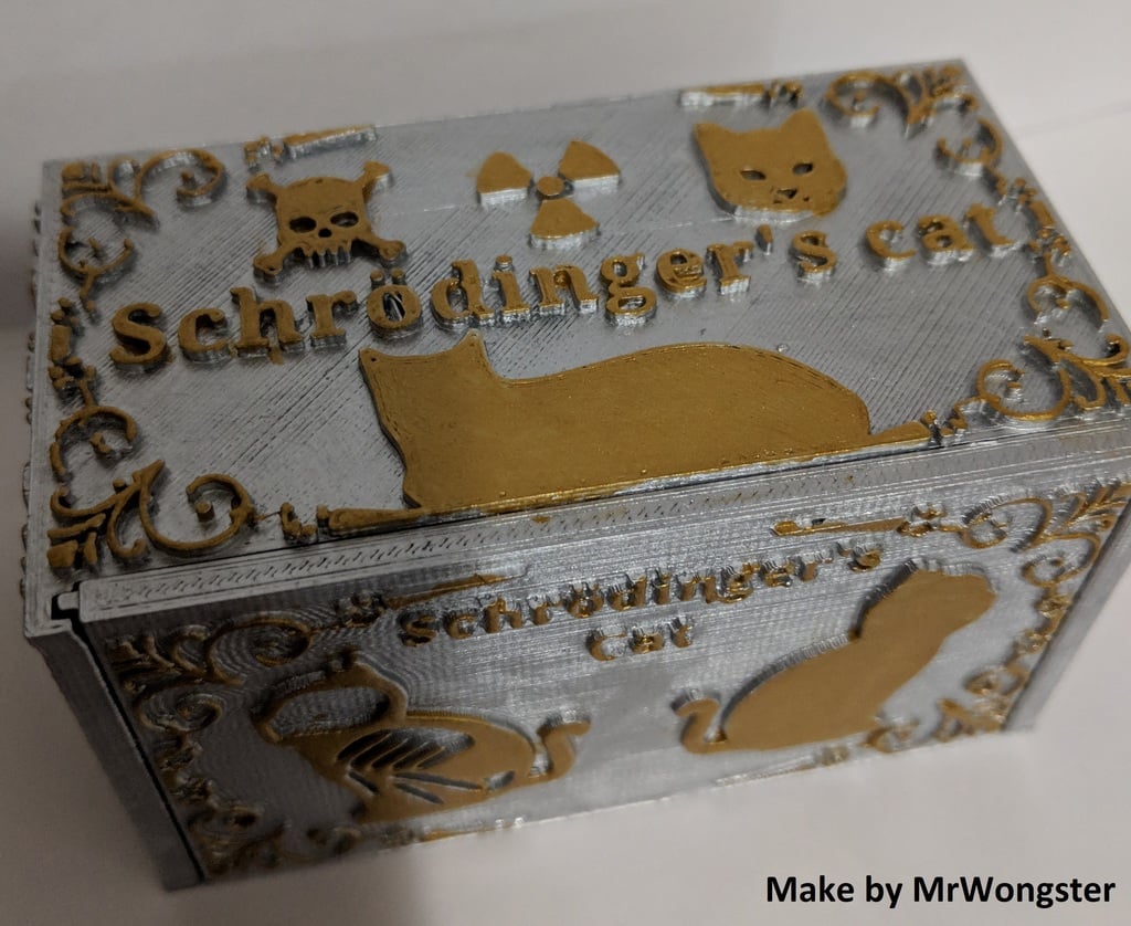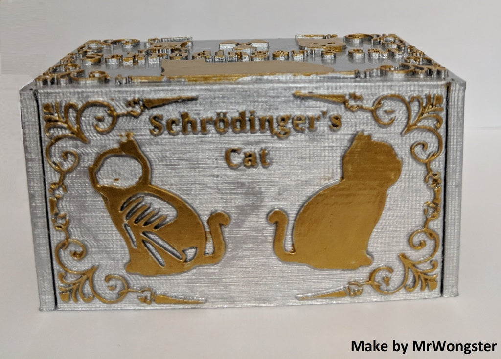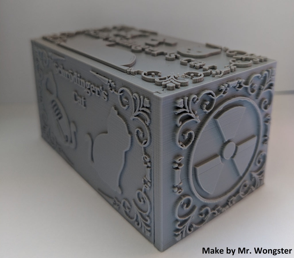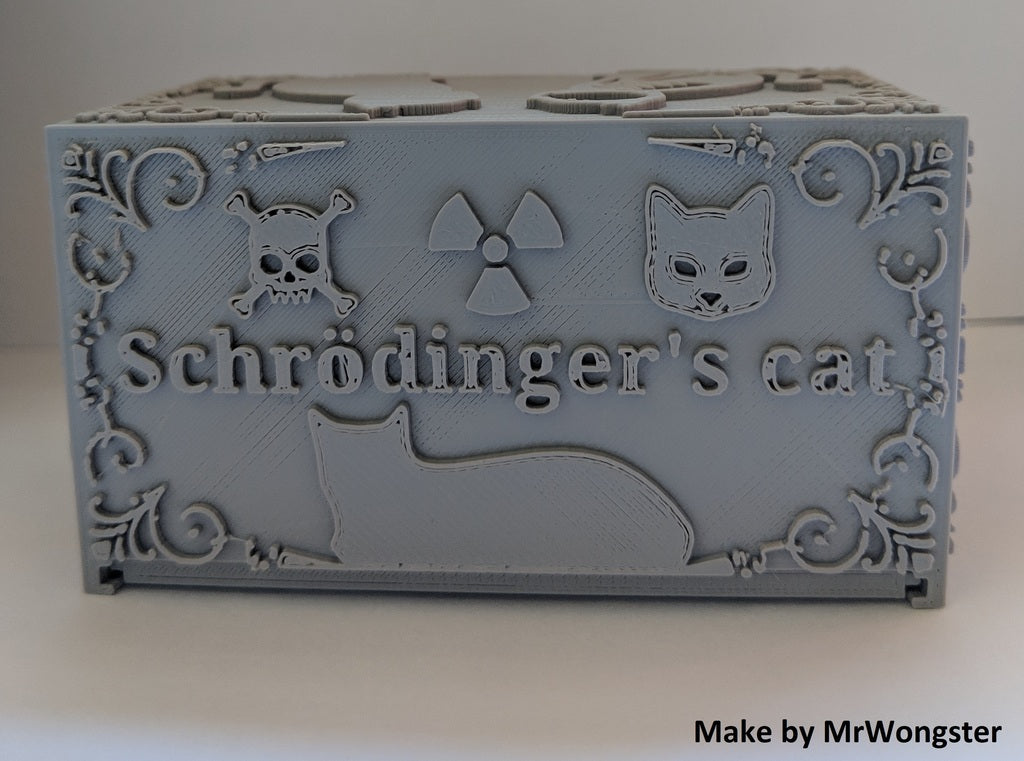 Schrödinger's Cat is a 3D printing model that illustrates Erwin Schrödinger's thought experiment. After downloading the necessary files, you can select a random STL file that contains either a living or dead cat. Regardless of which one you choose, you will only discover which model you have selected once the print is finished and you open the box. This product serves as a conversation starter, an illustration of quantum physics, and a fun desk decoration for all physics enthusiasts.