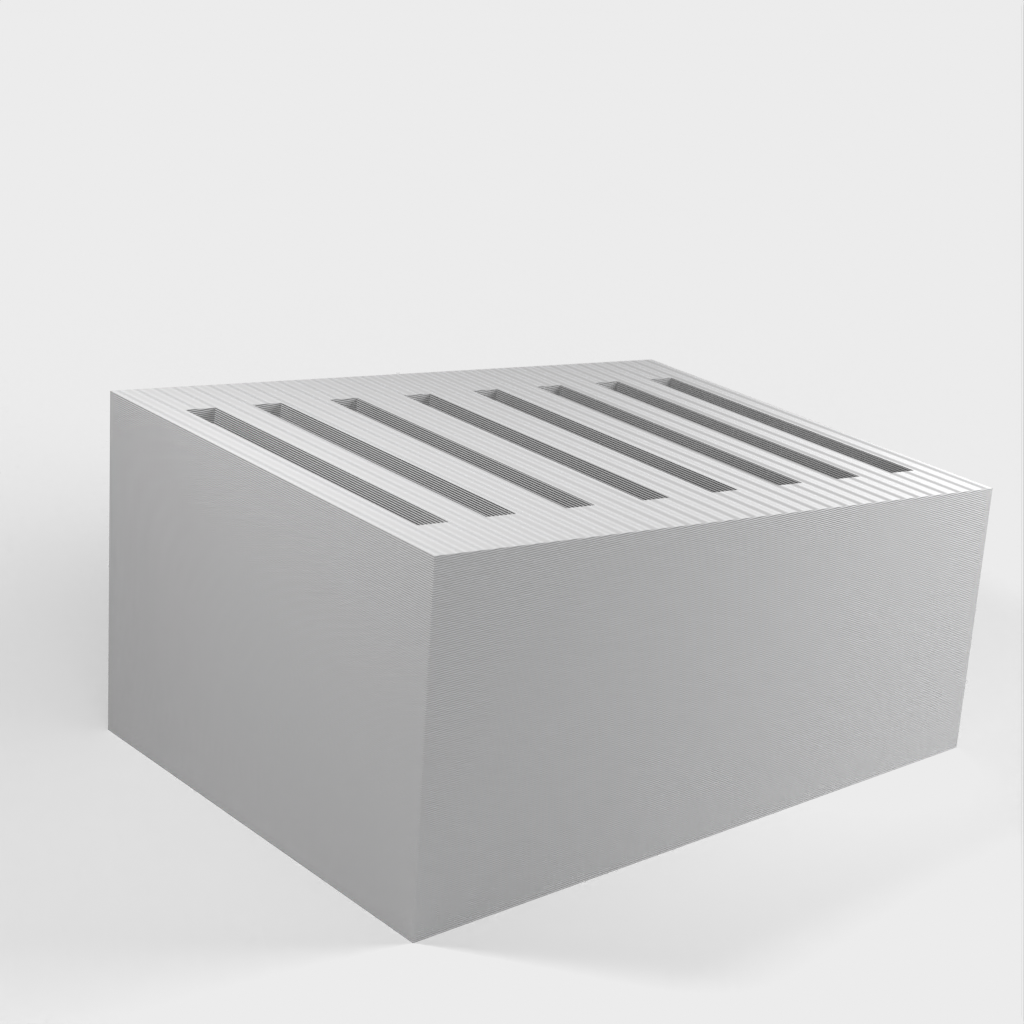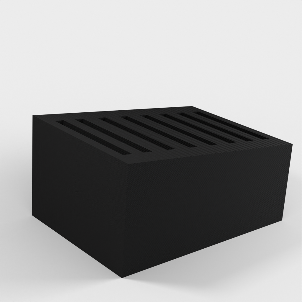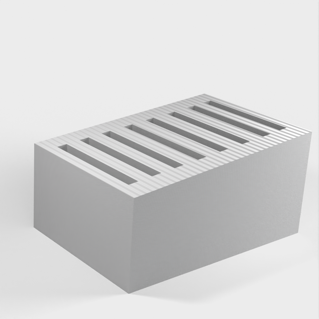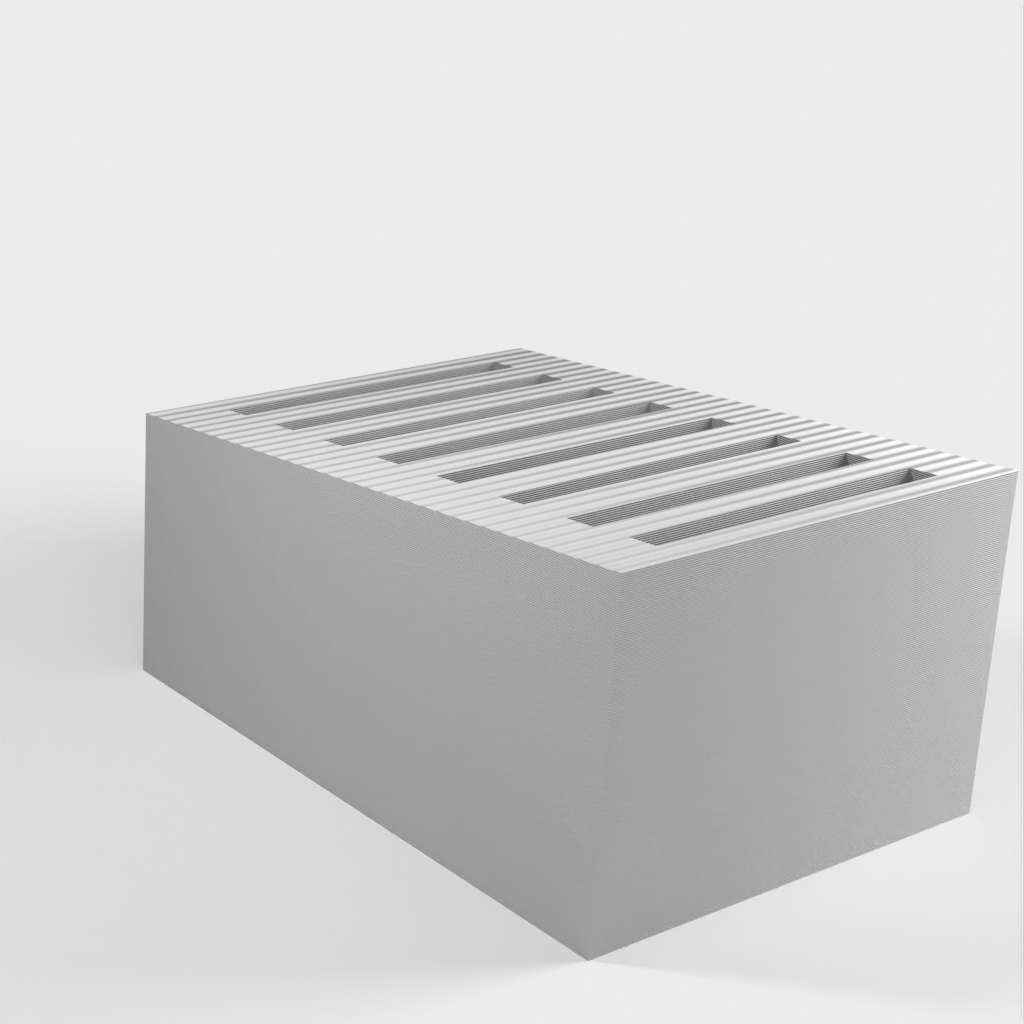 This is a simple SD card holder that can hold up to 8 SD cards. The slots are a bit tight to stop the cards from falling out if you turn the holder upside down. Furthermore, the SD card holder has a very simple design.