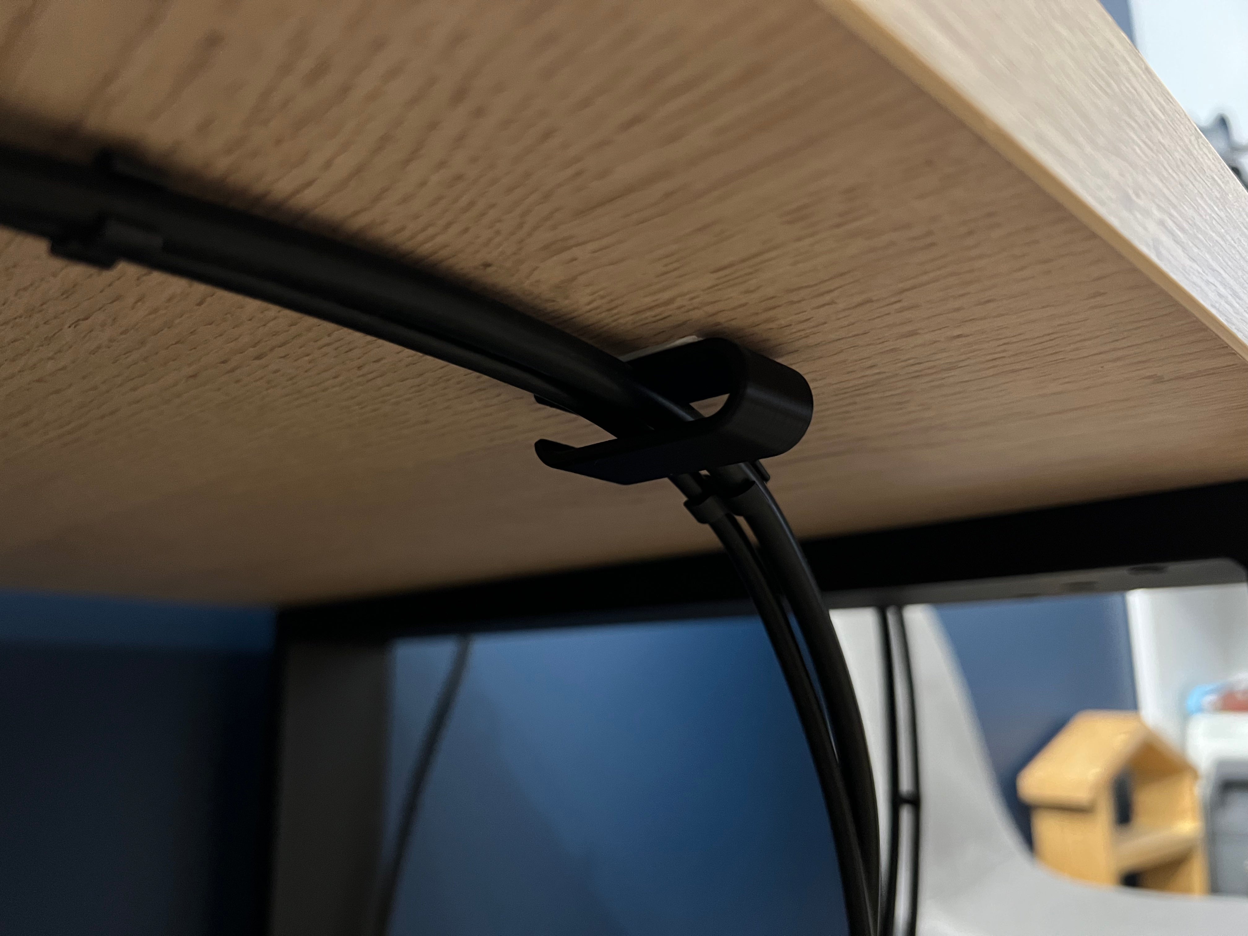 The Simple Cable Organizer is a practical solution for managing cables that would otherwise be in the way or unnecessary. This organizer is perfect for keeping your soldering iron cable well-organized and out of sight. It can be easily attached to the underside of your desk with double-sided tape and is suitable for use in both upward and downward facing positions. It is a simple yet effective way to keep your workspace clean and tidy.