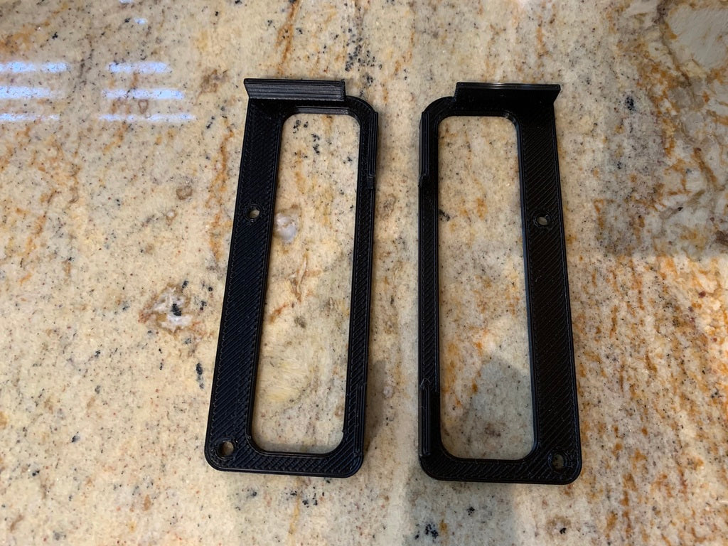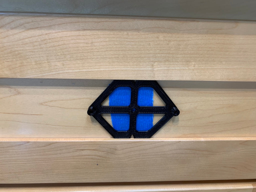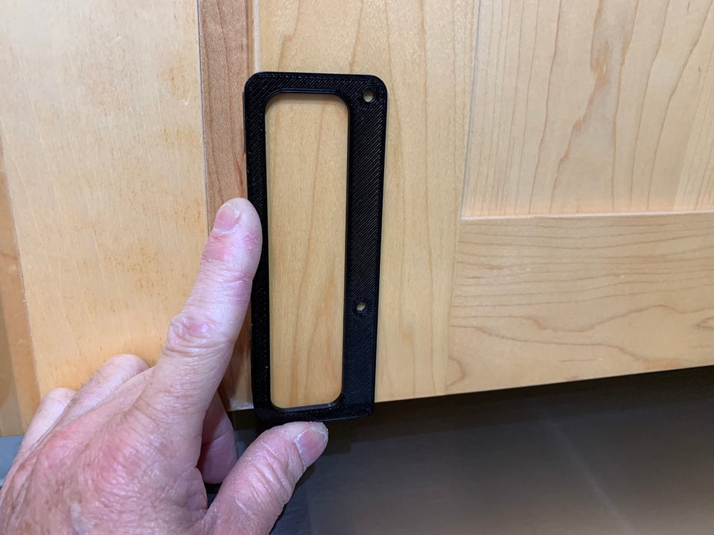 Skabeloner til boring af håndtag på skabe og skuffer, designet til håndtag med 2 skruer og en skrueafstand på 3". Du får både en venstre- og højrehånds version af dørskabelonen ved at spejle STL-filen i dit slicer-software (Gcode generator). Skabelonen til skufferne passer perfekt i plads på topskufferne. Marker venstre til højre center på et stykke tape. Til de højere, nederste skuffer skal du sætte et stykke tape på skuffens front til at markere skuffens midte. Der er et hul i skabelonens centrum, så du kan finde din markering nemt.