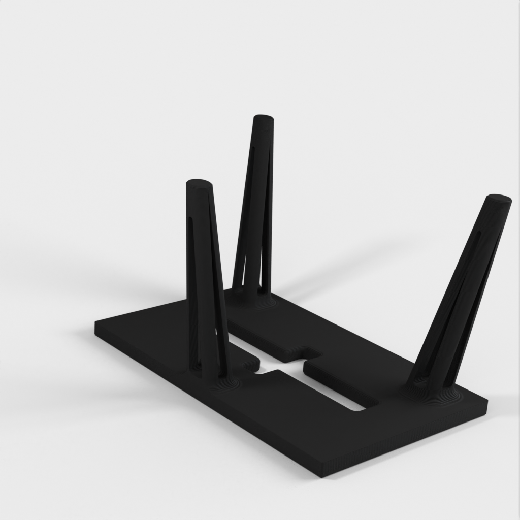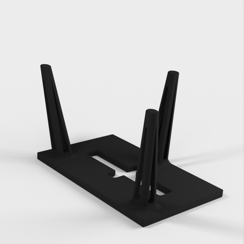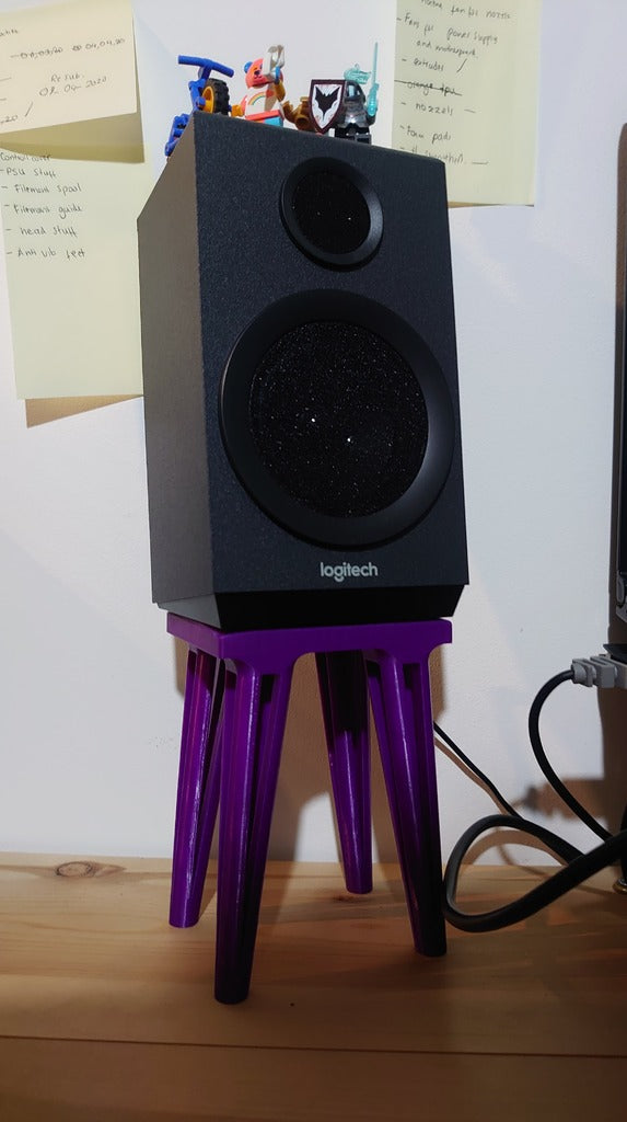 A set of speaker stands designed specifically for the Logitech speakers shown in the first image. You may need to check the base dimensions to ensure they fit yours.