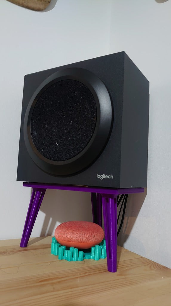 For use with a Creality Ender 3, the subwoofer stand is scaled down to 95% to fit on the build plate.