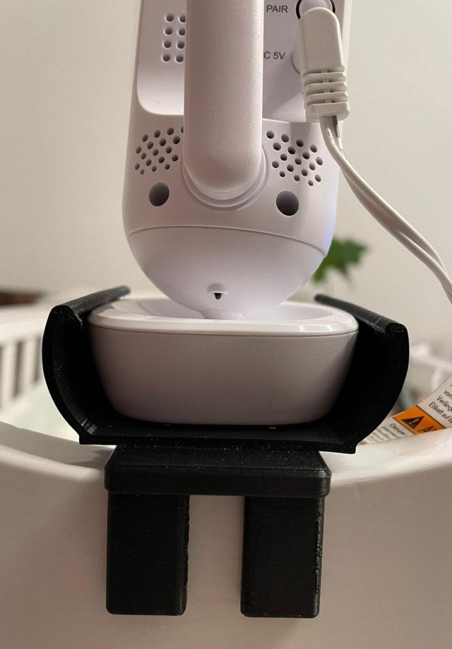 The support base is constructed to be robust and easy to install. You have flexible mounting options as it can either be assembled with screws or glued with quick cyanoacrylate adhesive. This design guarantees that your baby monitor is held in an optimal position, allowing you to monitor your child easily and safely.
