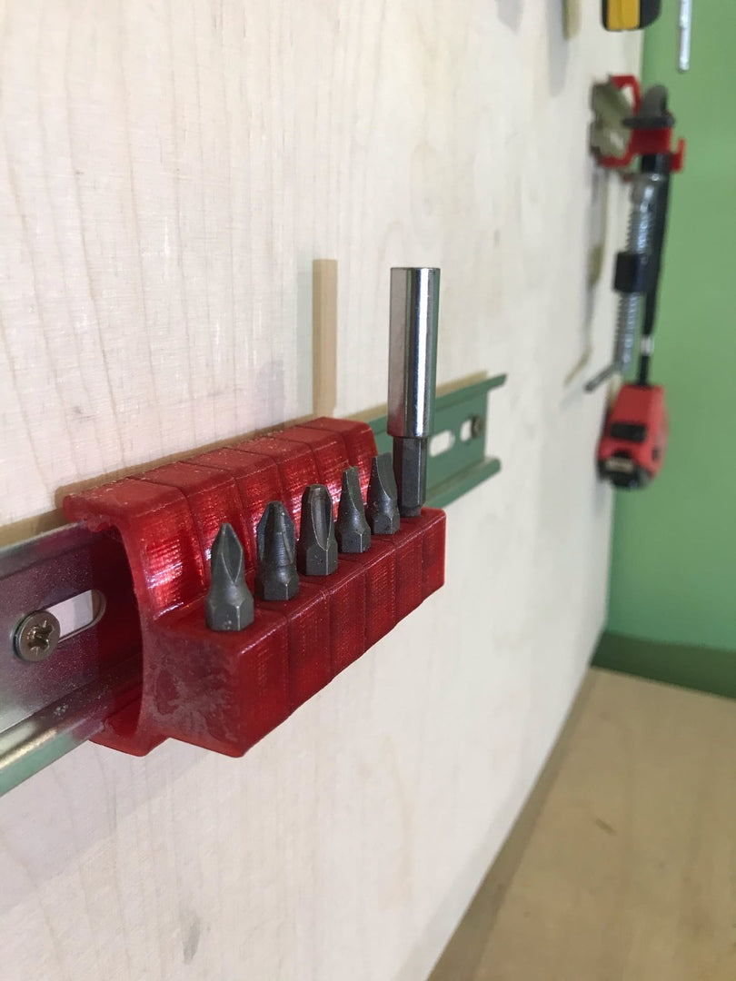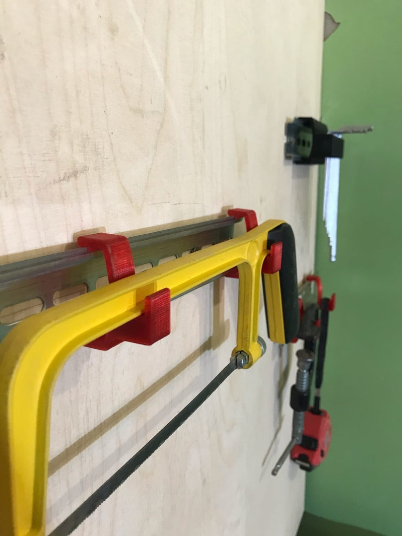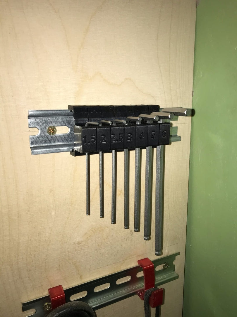 Each holder ensures that your tools remain in place while still being easily accessible. The system offers a flexible approach to tool organization, as you can easily adapt the mounting on the DIN rail to your specific needs. This is a budget-friendly method for creating a more efficient and tidy environment where you can easily find the tool you need without wasting time.