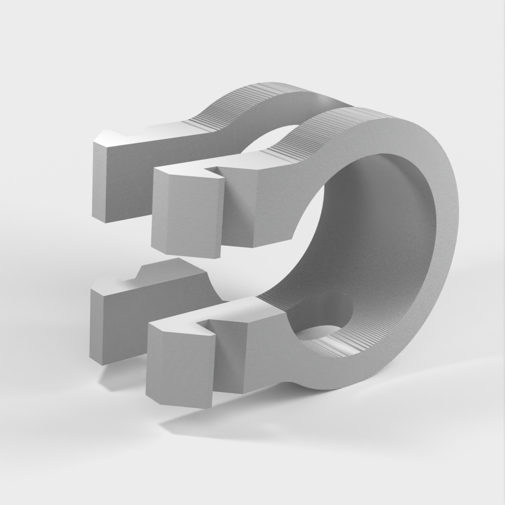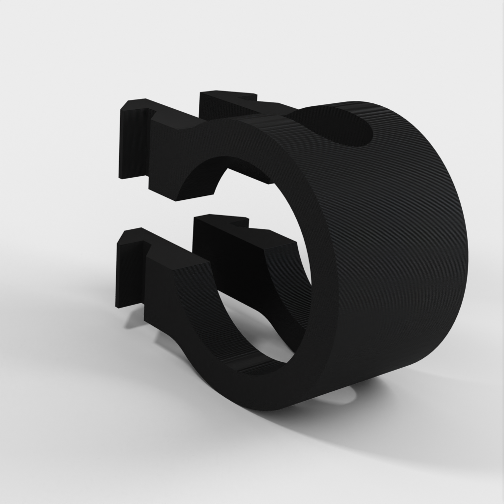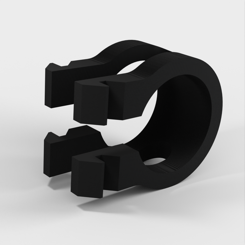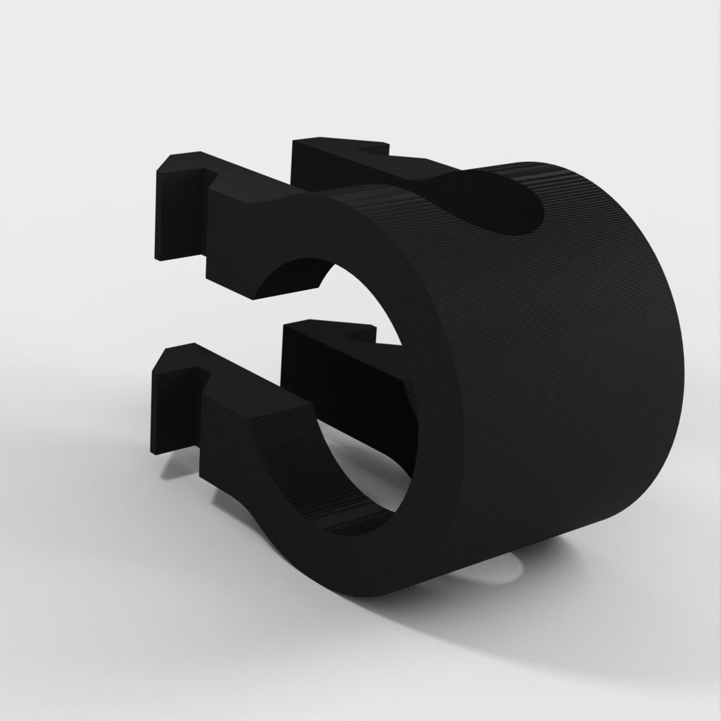 The transversal wire management clip is designed for mounting on a 2020 profile. It holds wires that cross them perpendicularly. The clip is available in two sizes with an internal diameter of either 11mm or 8.5mm, to fit the most common wire sizes.