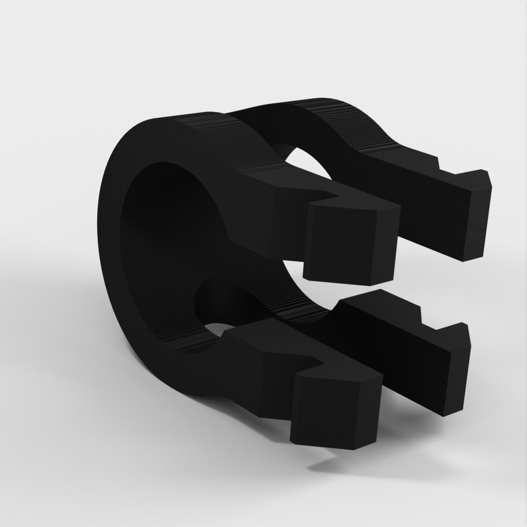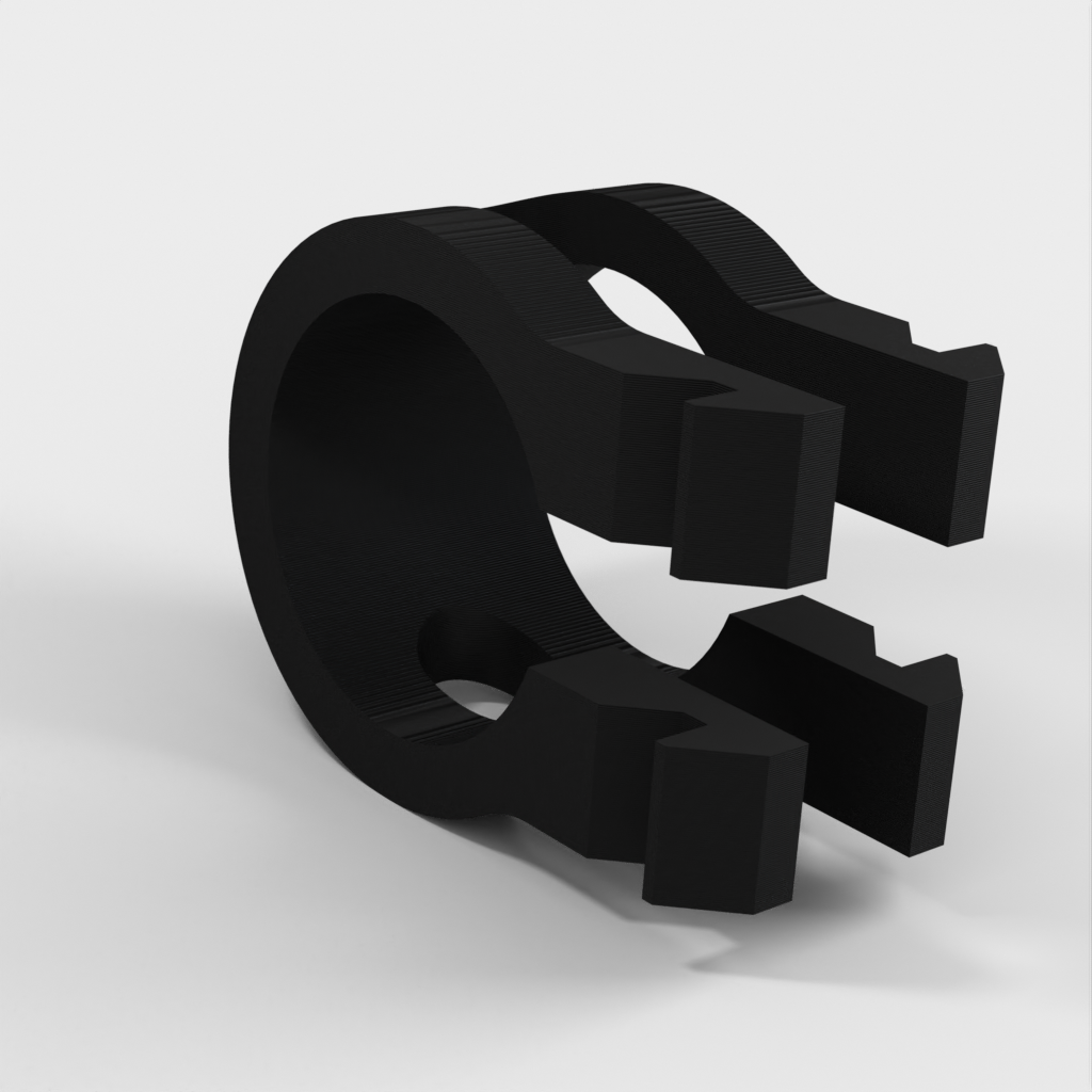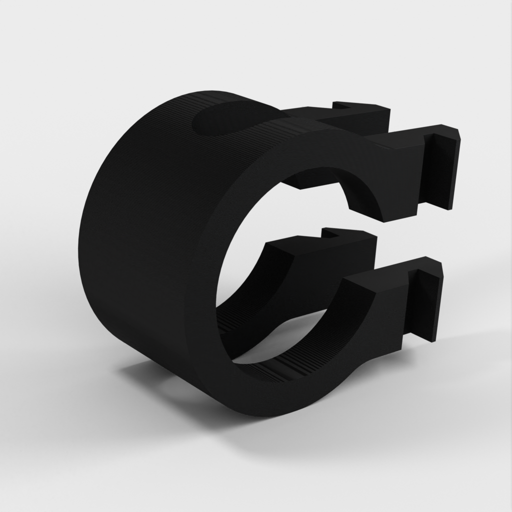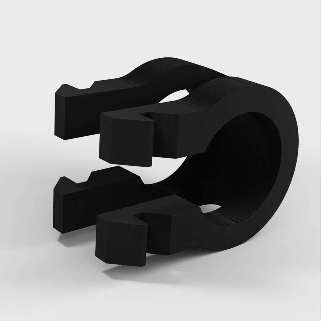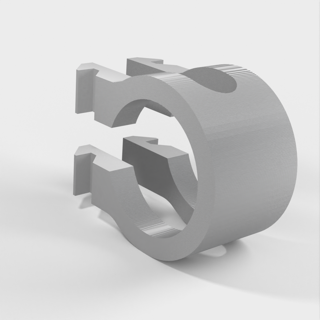 The transversal wire management clip is designed for mounting on a 2020 profile. It holds wires that cross them perpendicularly. The clip is available in two sizes with an internal diameter of either 11mm or 8.5mm, to fit the most common wire sizes.