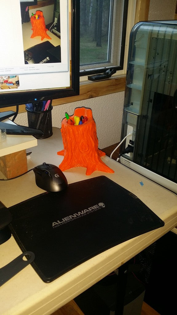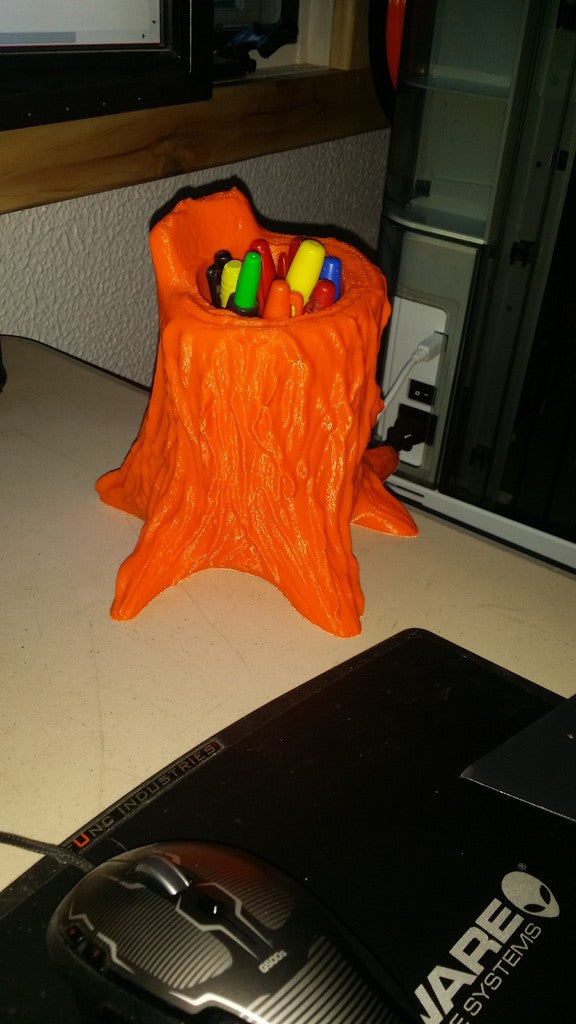 This is a unique and artistic pencil/pen holder shaped like a tree stump. The holder is designed in a size that can accommodate several pencils and pens at once, and with its nature-inspired design, it will bring a touch of natural beauty to any desk or creative space. It is ideal for keeping your desk tidy while giving the room a personal touch.