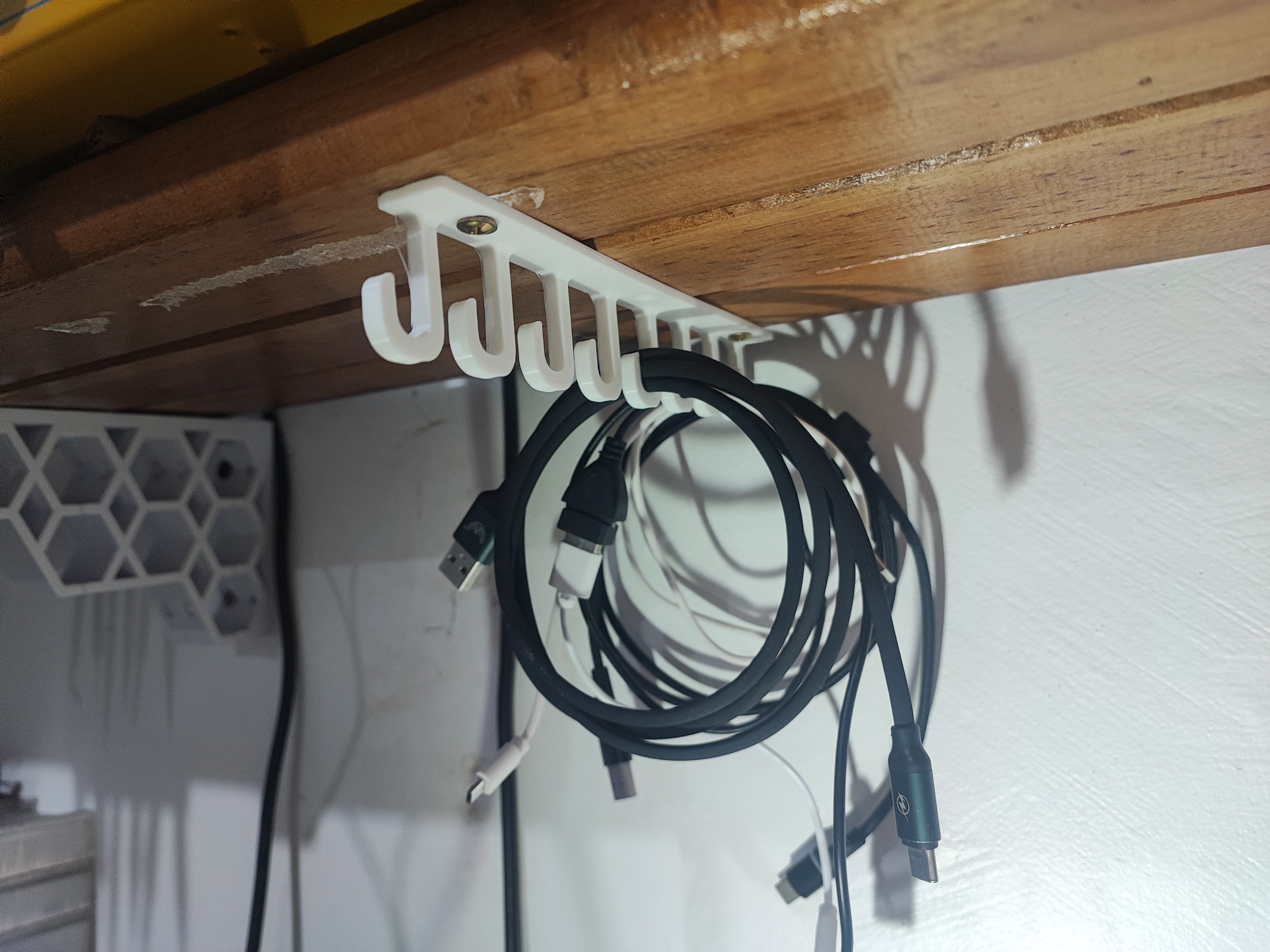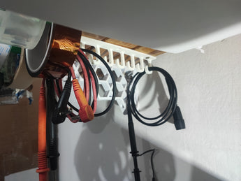 This under-shelf cable organizer and hook offers a practical solution for organizing your cables and wires under the desk or shelves. With this cable hanger option, you can easily keep your workspace tidy and free from clutter. By placing it discreetly under a shelf, you create a more harmonious and organized space where the cables are hidden but still easily accessible. This design is particularly useful on, for example, an electronics workbench or in the home office, where a well-organized workspace is essential. The product helps keep your electrical connections neat and secure, acting as an effective wire holder to prevent tangled cords.