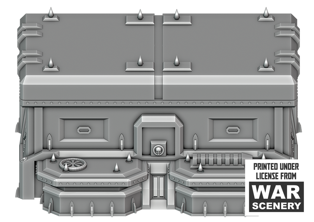 Oplev Vehicle Depot, et detaljeret terræn, der forbedrer dine Grimdark tabletop-spil. Denne del af Apocalypse Fortress-kollektionen skaber en realistisk baggrund med forladte køretøjer og lagerbygninger. Brug det til at introducere dynamiske og strategiske scenarier i dine wargames.