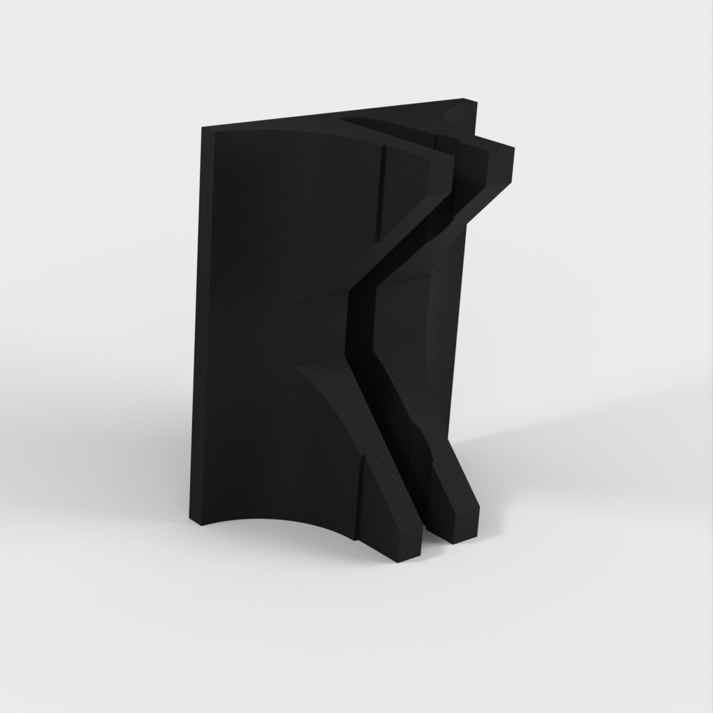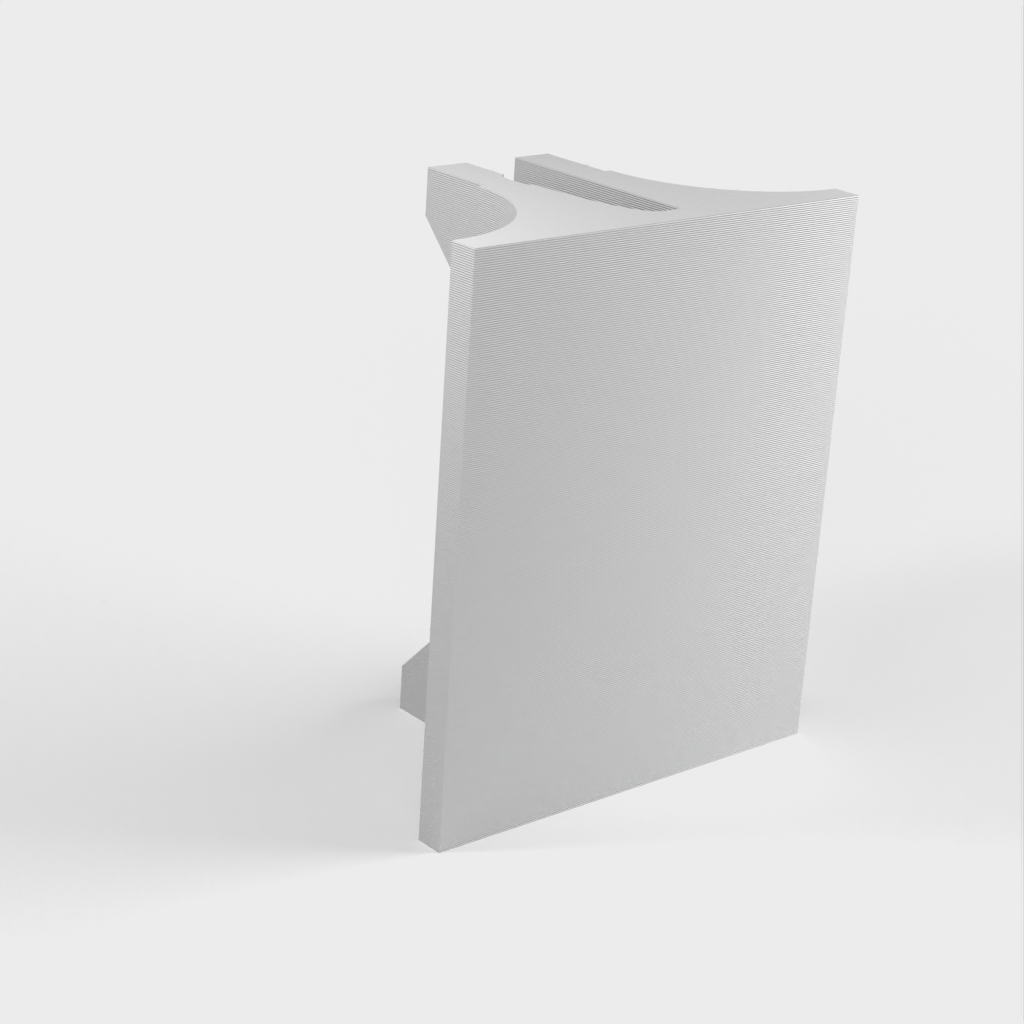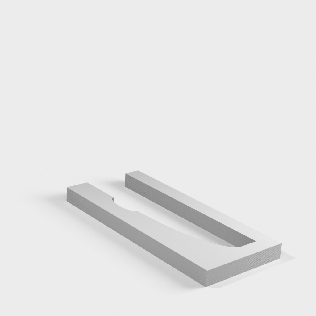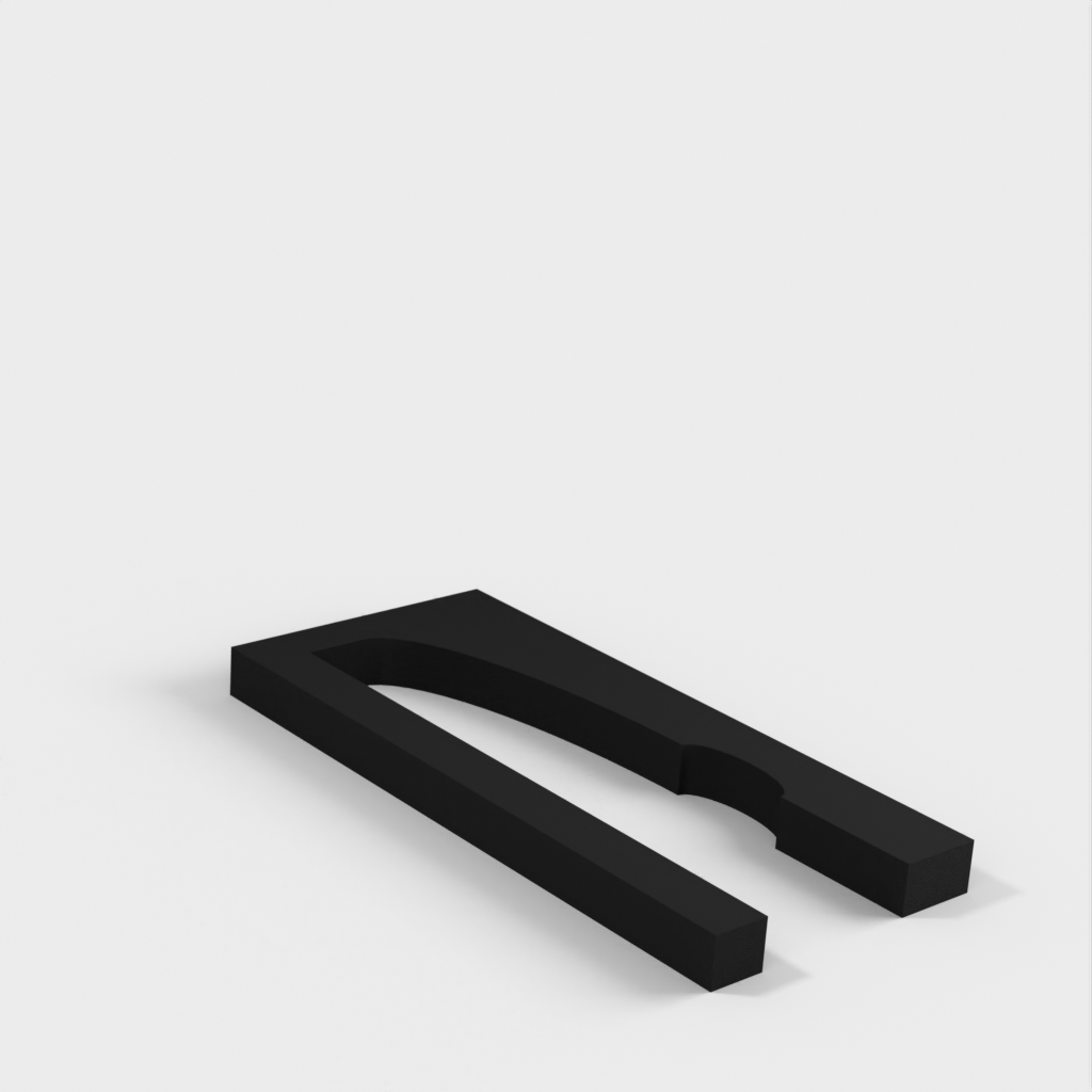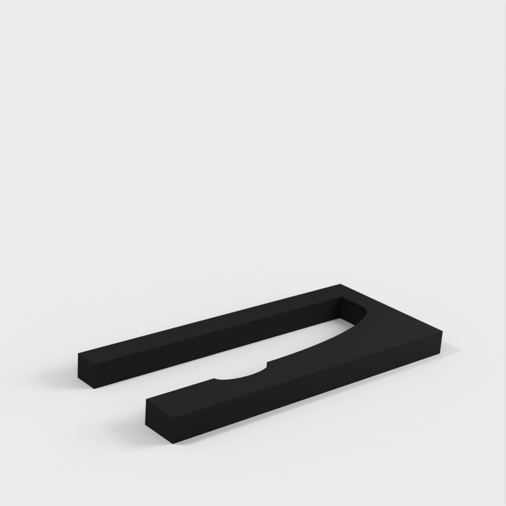 Dette er en laptop stand til at holde Dell Latitude 7480 (~2018) laptop lodret med skærmen åben 180 grader. Standsen sættes på fra bunden eller skubbes på fra siden. Denne placering af skærmen gør det mere ergonomisk at arbejde, når man bruger et eksternt tastatur og mus. Bemærk, at der er en kanal til gummibåndet. Det bør være en perfekt pasform: pæn og tæt uden at være stram. For at fjerne det, skal du skubbe det til begge sider.