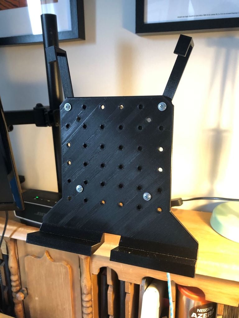 - Valgfrie, printbare kroge kan tilføjes for ekstra støtte og kan justeres, så de passer til tablets med etui.