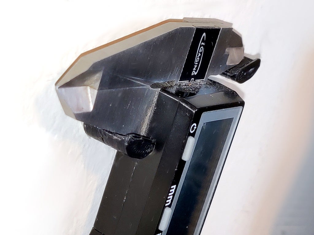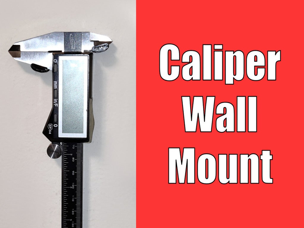 Simple wall mount for calibration units. This bracket is compatible with most brands, whether they are digital or dial. The image shows an EZ Cal digital calibrator.