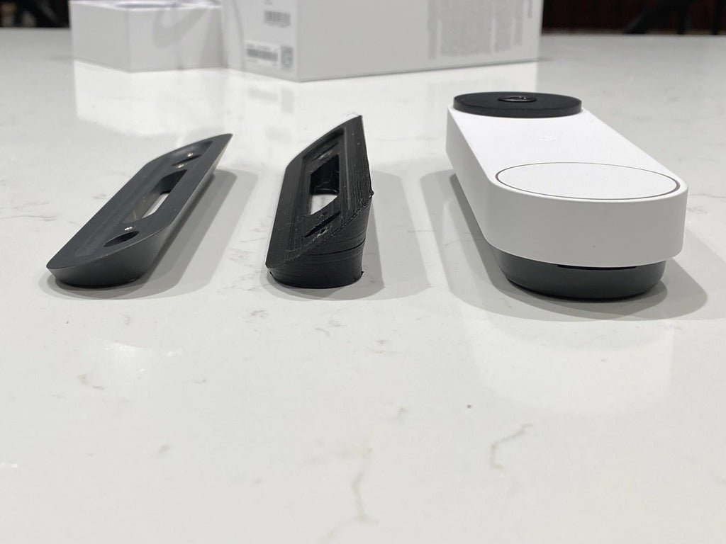 This angle mount is specially designed for the Google Nest Doorbell (Battery). The mount increases the angle of your Nest Doorbell, providing a better view of your entryway. The mount is easily adjustable, both in terms of vertical angle and horizontal tilt, so you can get it exactly as you want it.