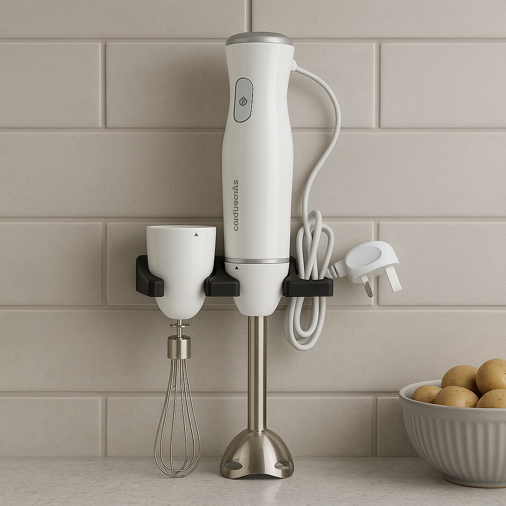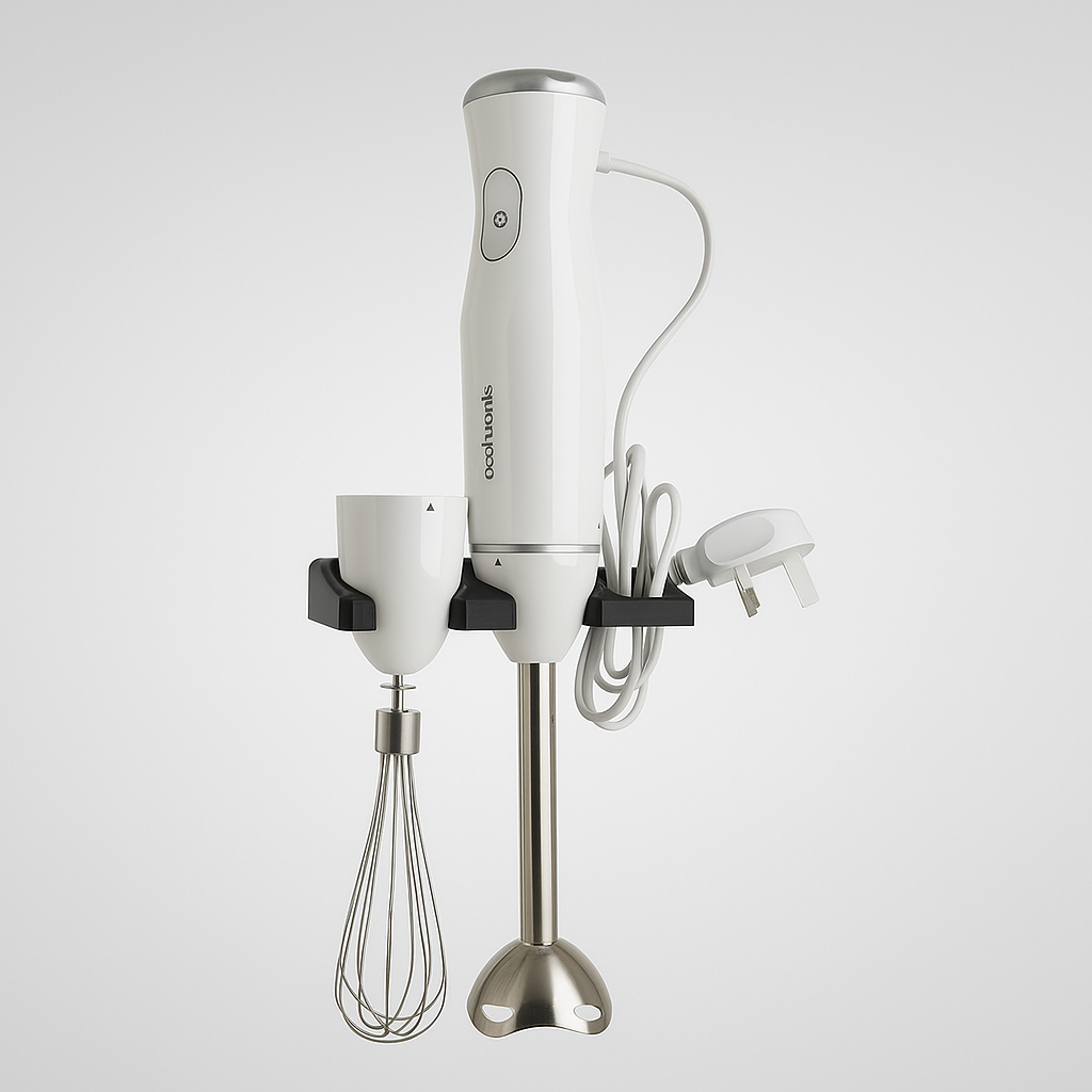 Whether you are making creamy soups, fresh smoothies, or delicious sauces, your immersion blender is always easily accessible. Although the bracket is primarily designed for a 'Cookworks' blender, its design is flexible and may potentially fit a wide range of immersion blenders on the market, making it a versatile solution for those seeking practical accessories for, for example, Delonghi or similar brands.