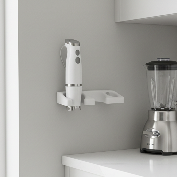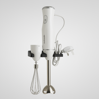 Optimize your kitchen space and keep things tidy with this smart wall mount for your immersion blender. Designed to create an uncluttered and functional environment, this mounting solution allows you to easily store your immersion blender, its accessories, and the cord all in one place. This frees up valuable cupboard space and keeps your kitchen countertops free from clutter.