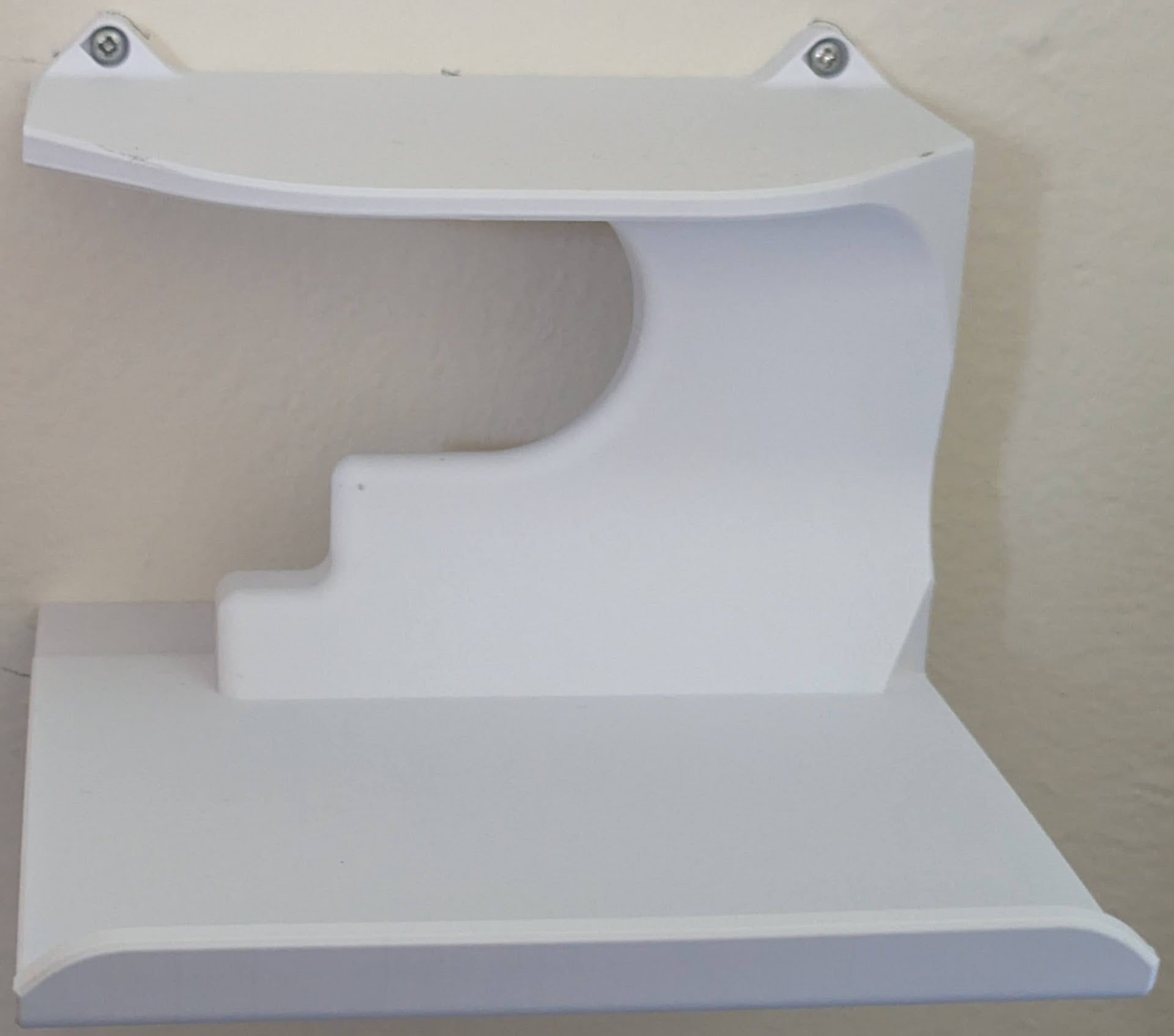 Installation is straightforward and requires only the use of standard #6 round head drywall screws (not included). The machine slides easily in from the left side into the holder, where it sits securely and stably. The thoughtful design ensures a robust grip that prevents the machine from moving accidentally once placed.