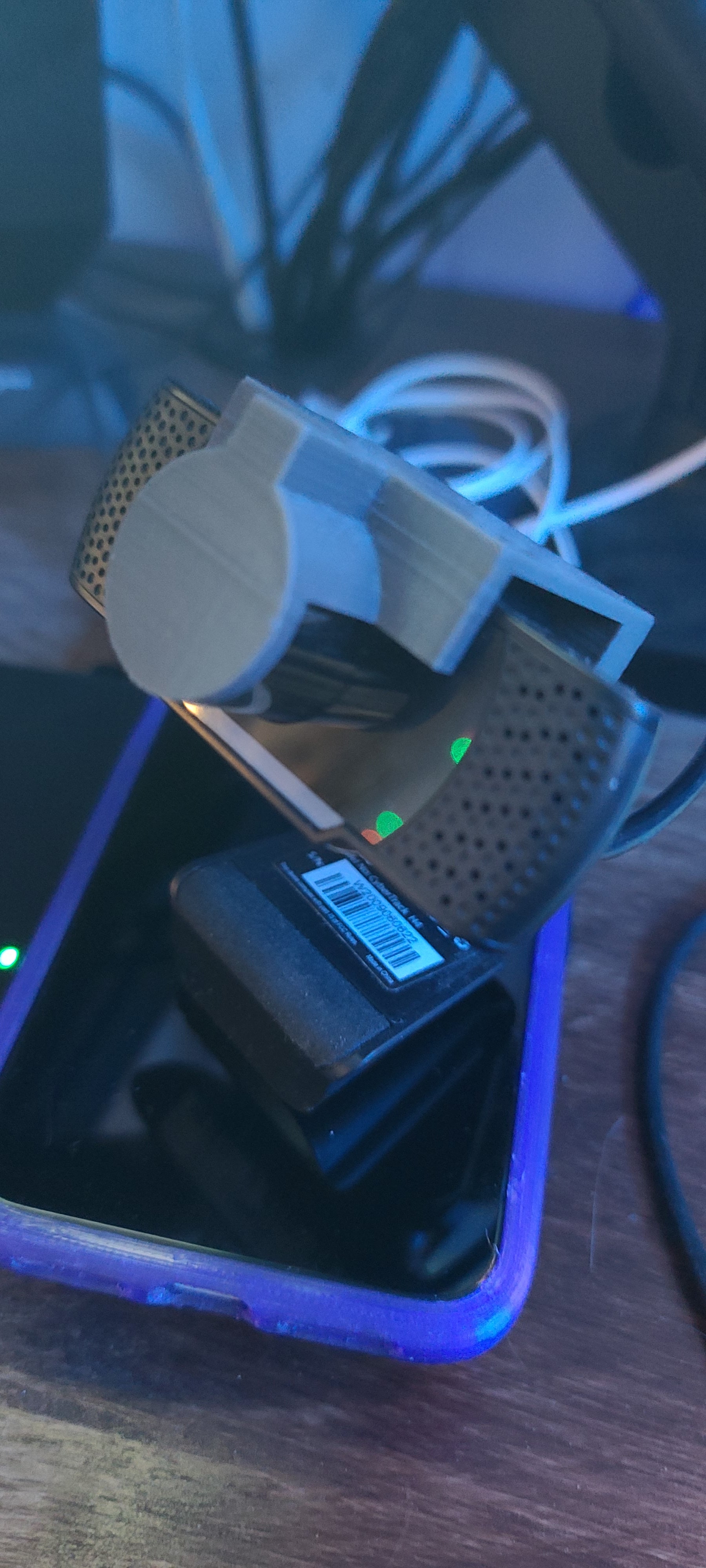 Webcam cover for privacy protection. Fits Logitech Cybertrack H4. Easy to push out and requires no supports.