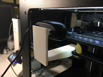 The mount reuses the existing plastic base and screw from your Logitech C270 camera, making installation straightforward. It slides effortlessly on and securely fastens to the printer's frame just below the build plate. For the sharpest image, it is recommended to adjust the camera's manual focus to suit the distance to the print area.