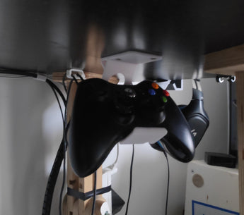 • Praktisk holder designet til diskret opbevaring af din Xbox-controller under skrivebordet.