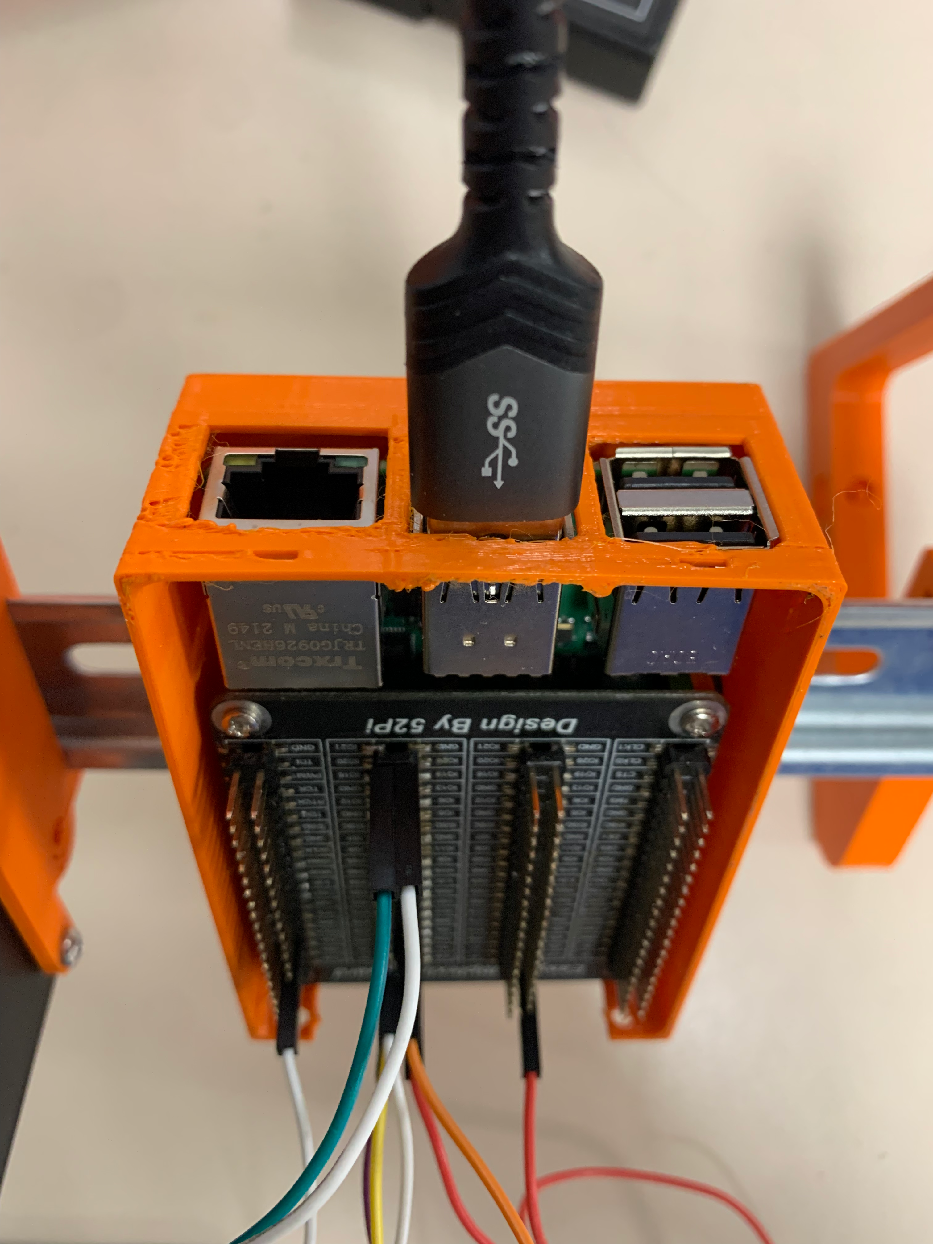 The design continues to allow easy access to all essential ports, including USB inputs, HDMI outputs, and power connection, facilitating connection and maintenance. By using this DIN rail holder, you can create a tidier and more functional setup that fits into existing DIN rail mount systems.